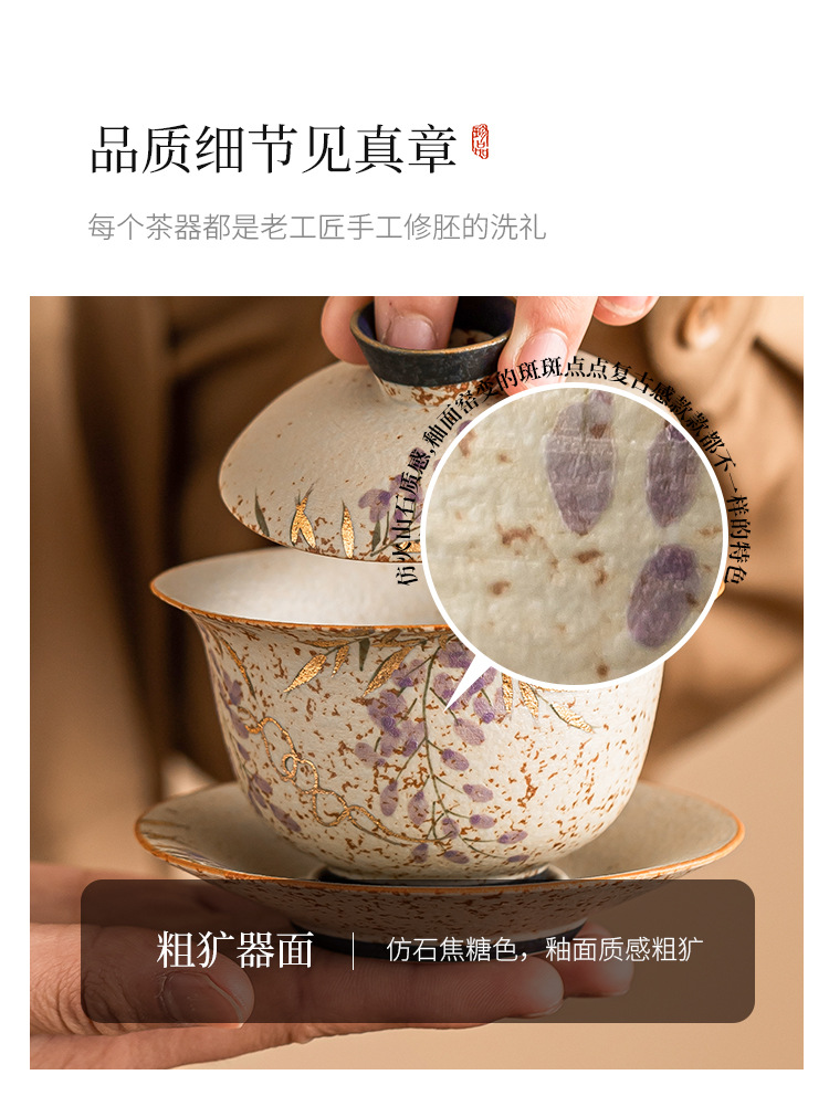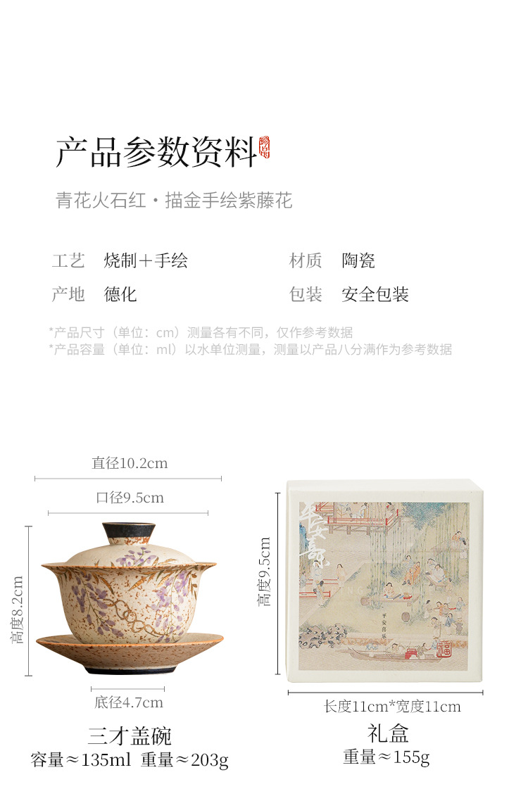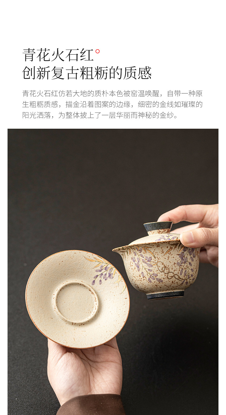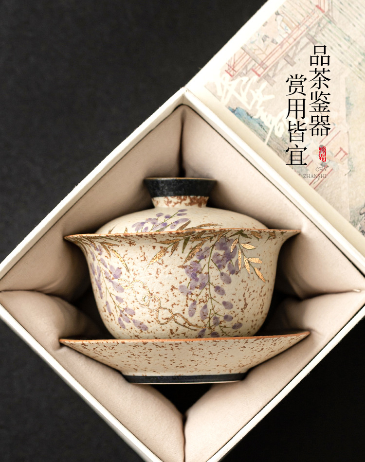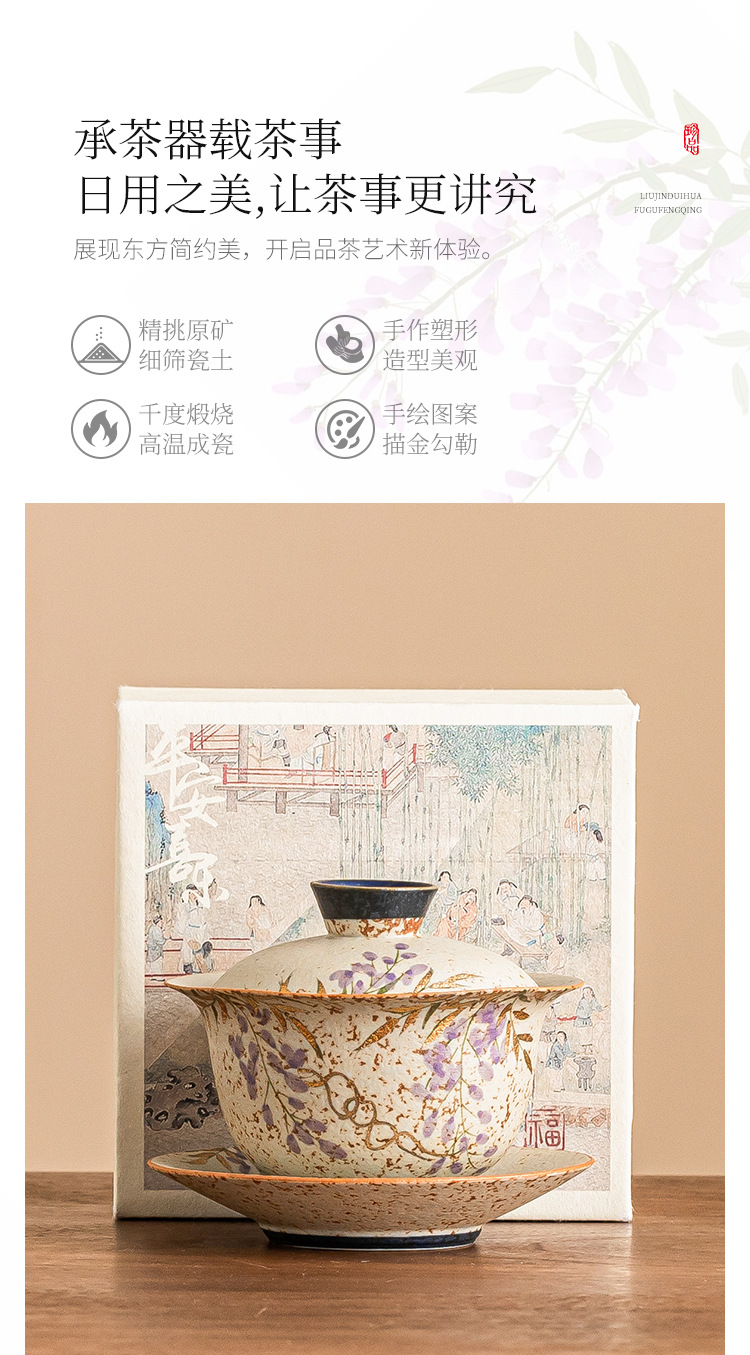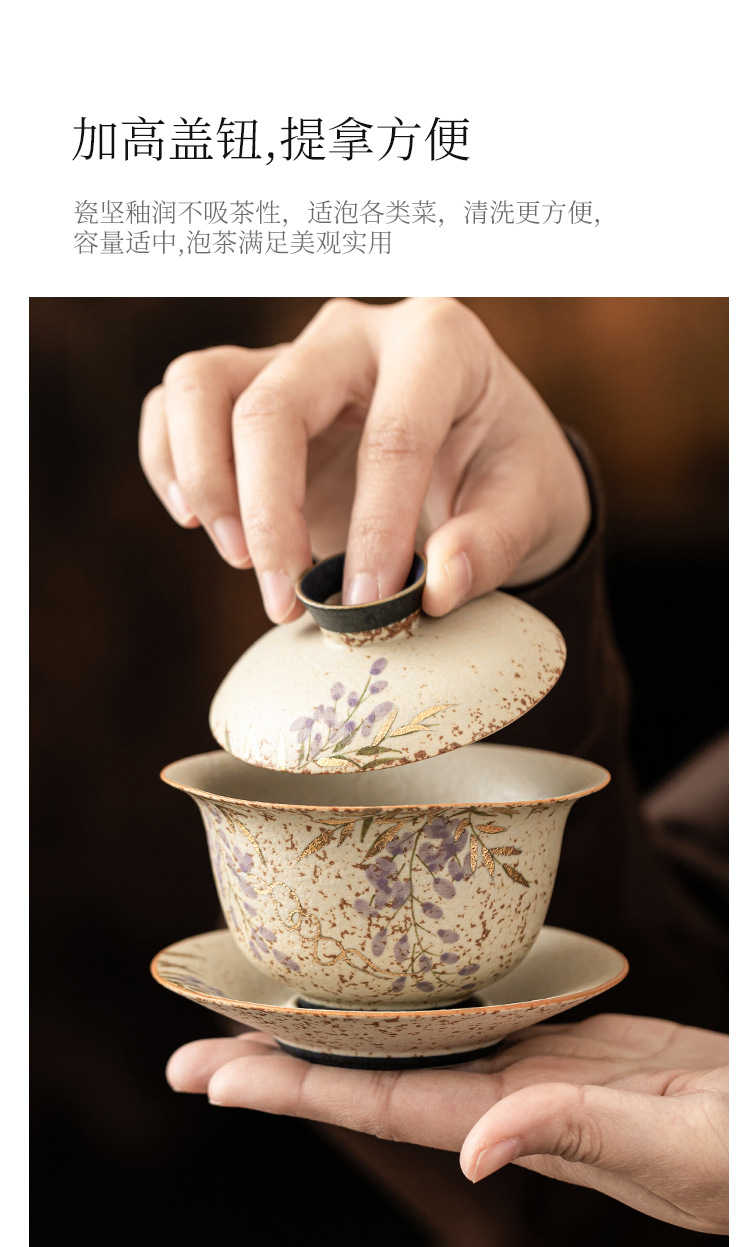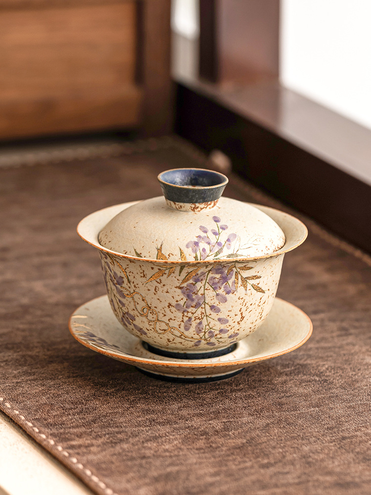- Màu xanh và trắng đá lửa bát nắp đỏ cốc trà sơn vàng vẽ tay hoa tử đằng có nắp bát pha trà cao cấp ba không nóng đơn