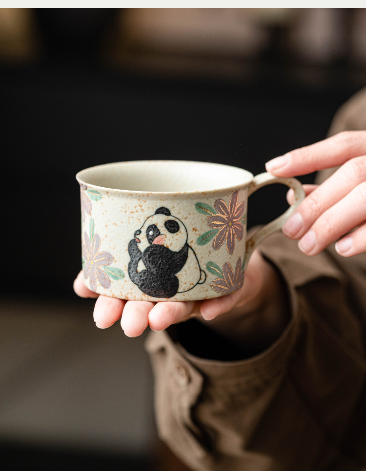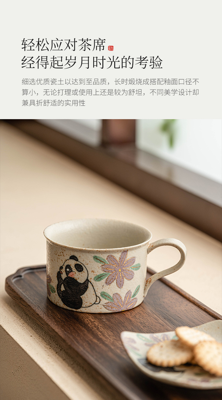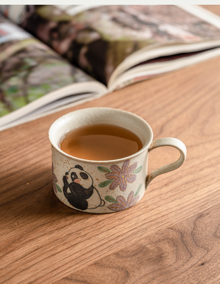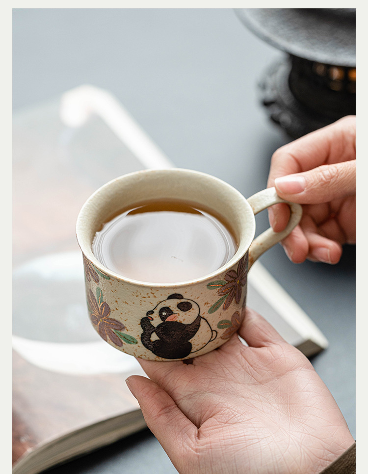 Màu xanh và trắng đá lửa cốc cà phê gốm sứ đỏ gấu trúc thưởng thức trà hoa cúc cốc uống nước giá trị cao cốc trà chiều tinh tế