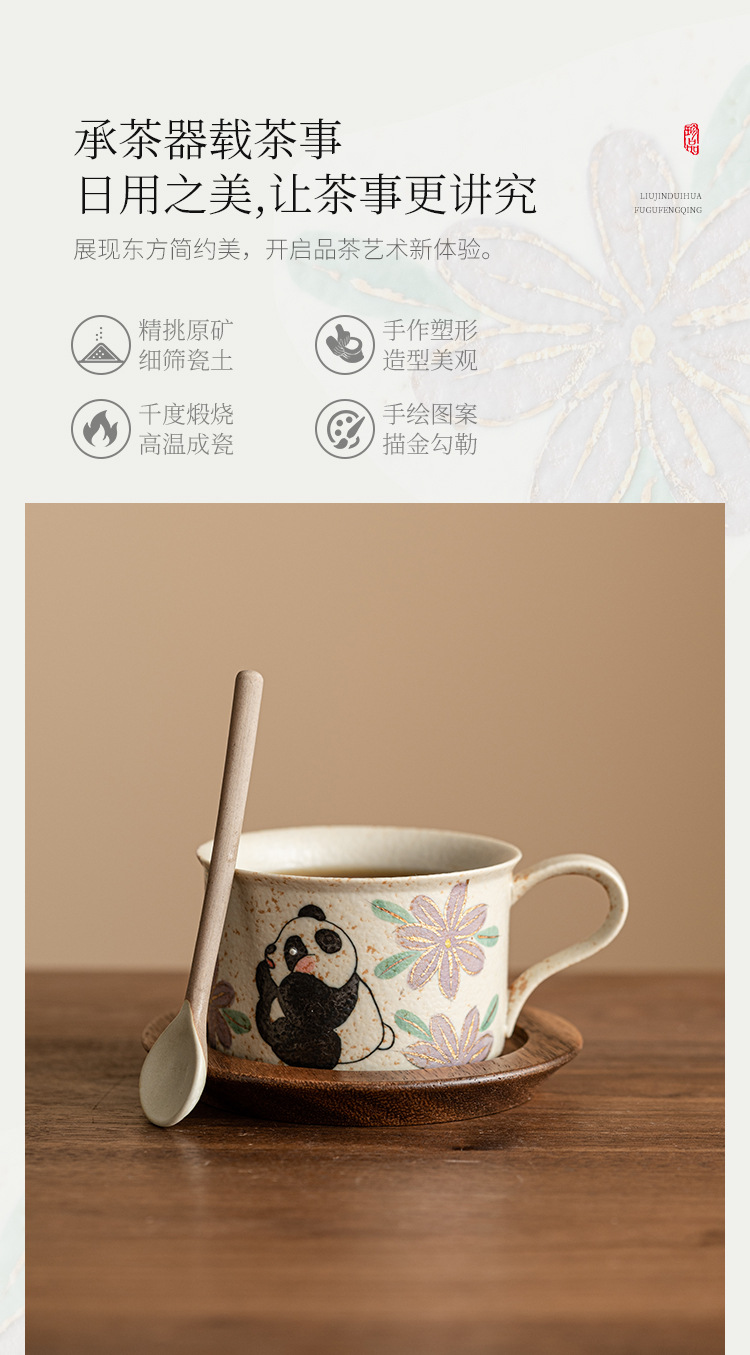 - Màu xanh và trắng đá lửa cốc cà phê gốm sứ đỏ gấu trúc thưởng thức trà hoa cúc cốc uống nước giá trị cao cốc trà chiều tinh tế