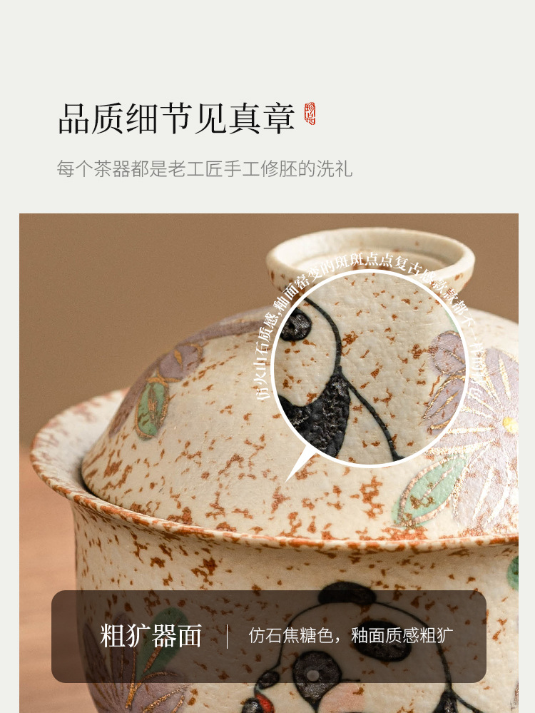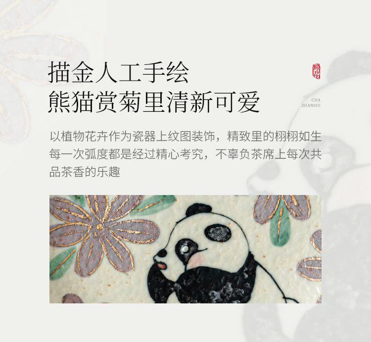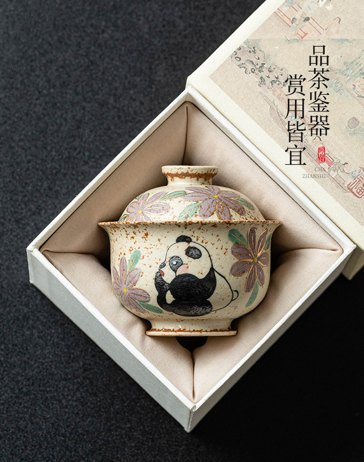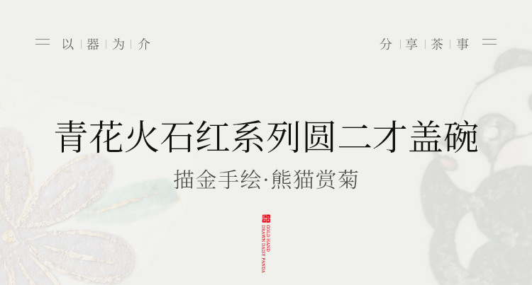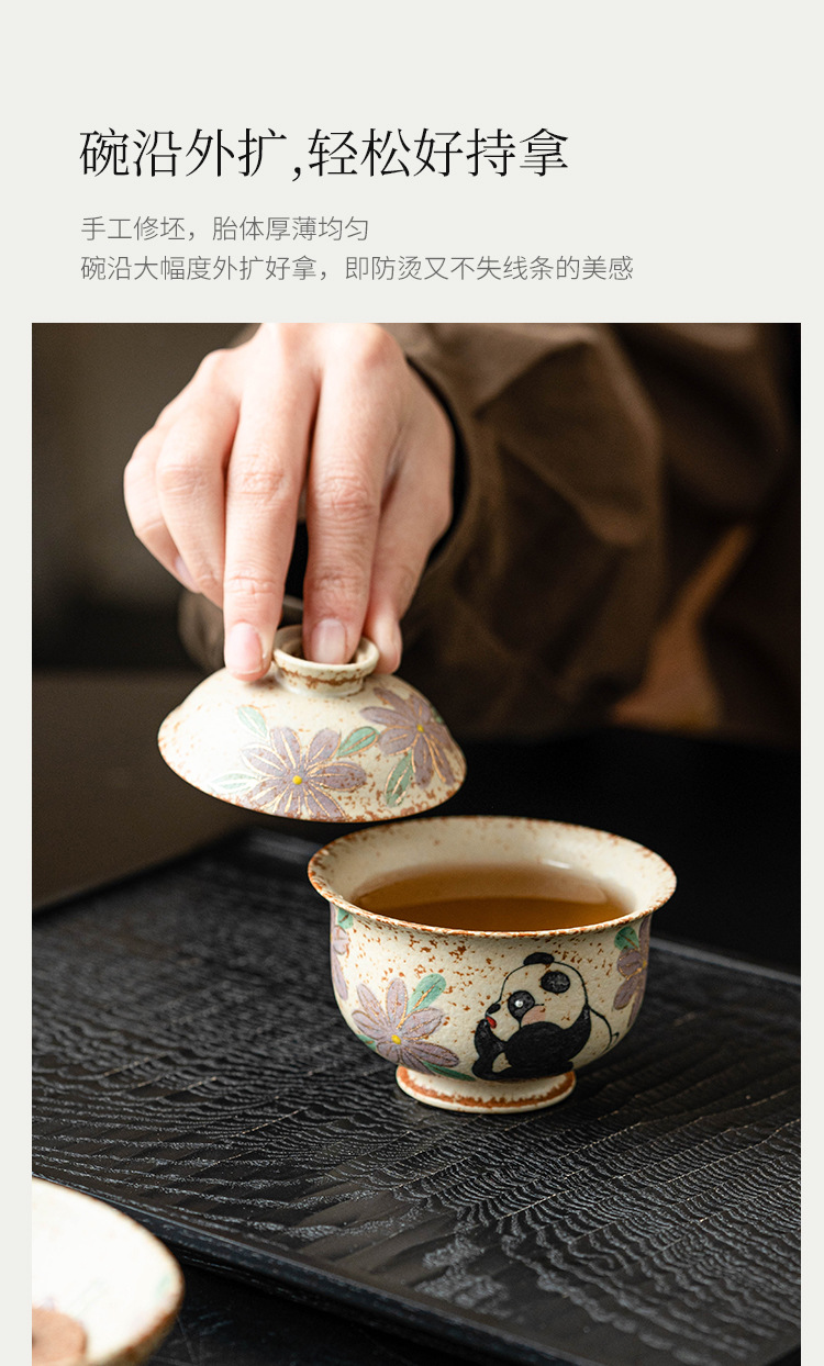 Màu xanh và trắng, đá lửa đỏ, bát có nắp, bát trà hoa cúc vẽ tay gấu trúc, bát pha trà cao cấp gia dụng có nắp, cốc trà