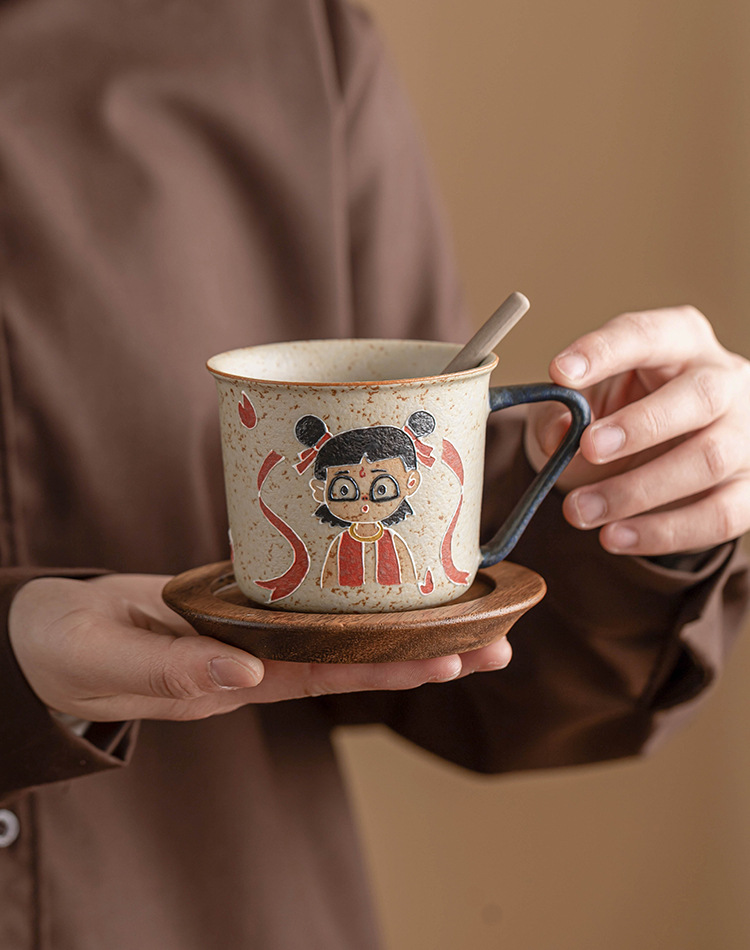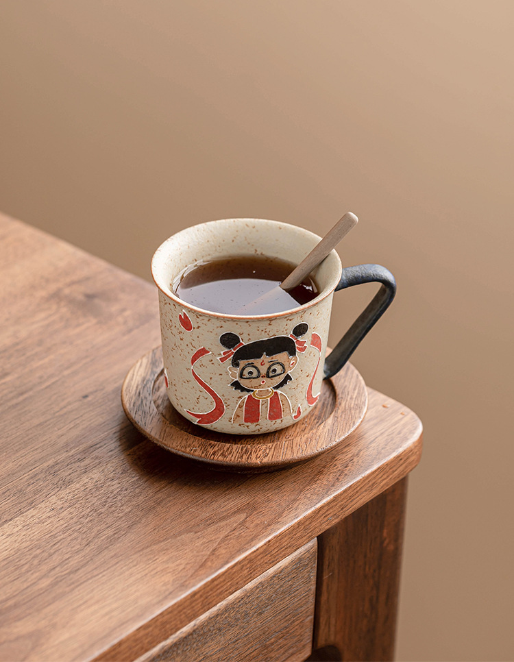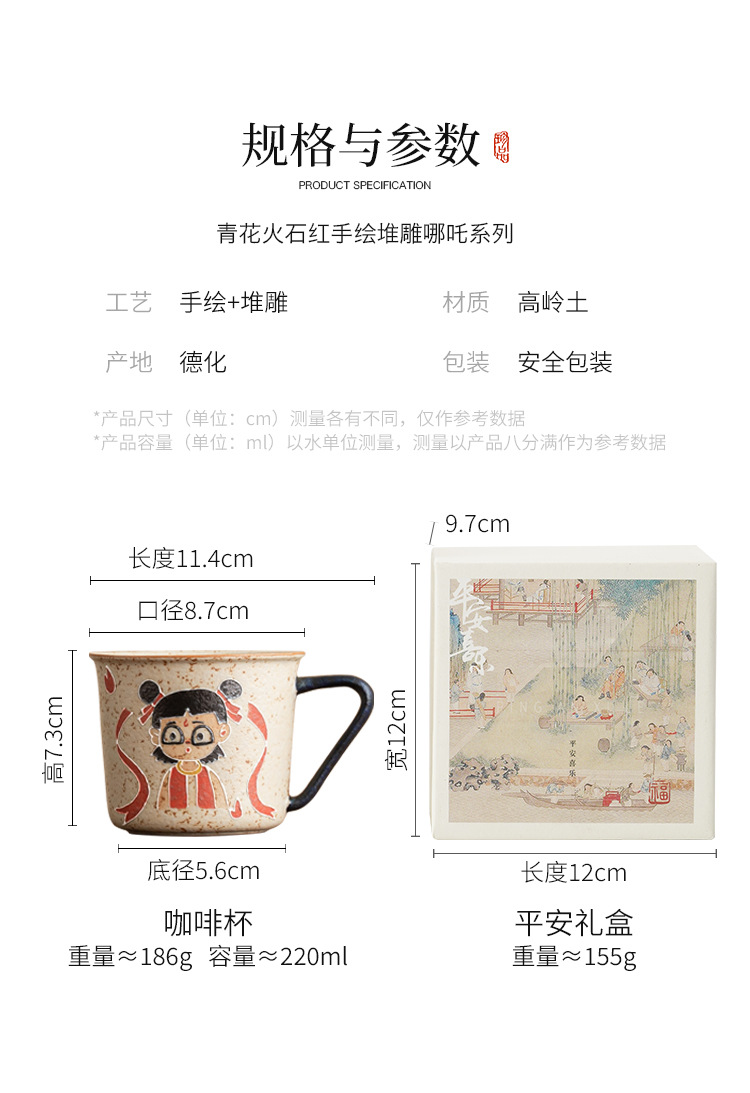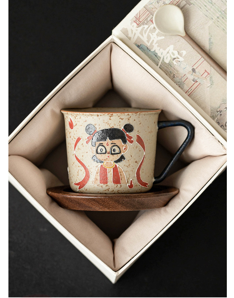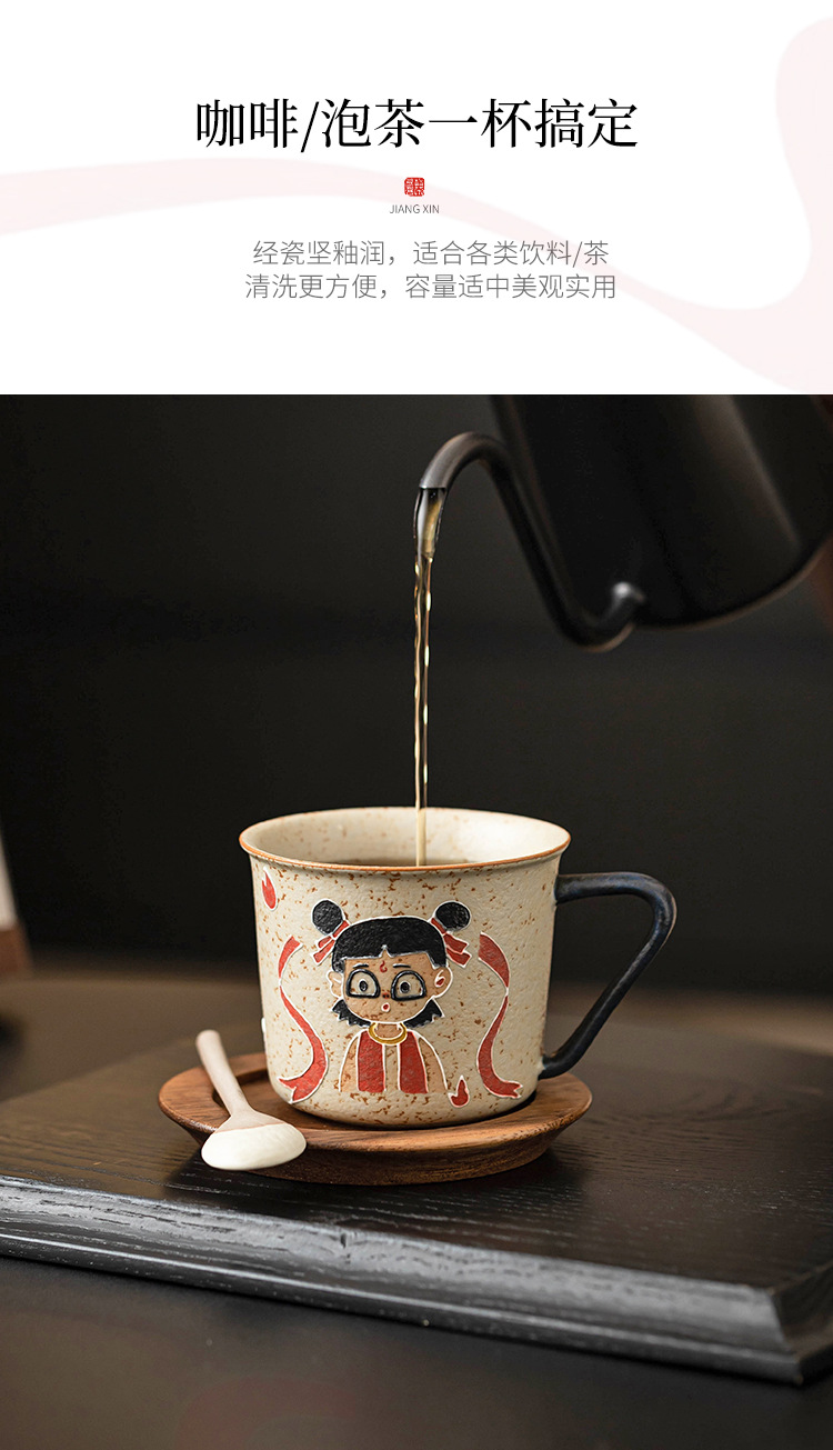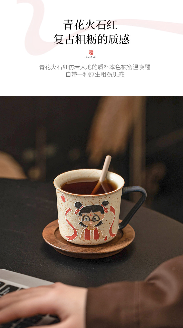 Màu xanh và trắng đá lửa đỏ cốc cà phê Nezha cốc uống nước Internet người nổi tiếng cốc cao cấp gốm sứ gia đình trà cốc cà phê