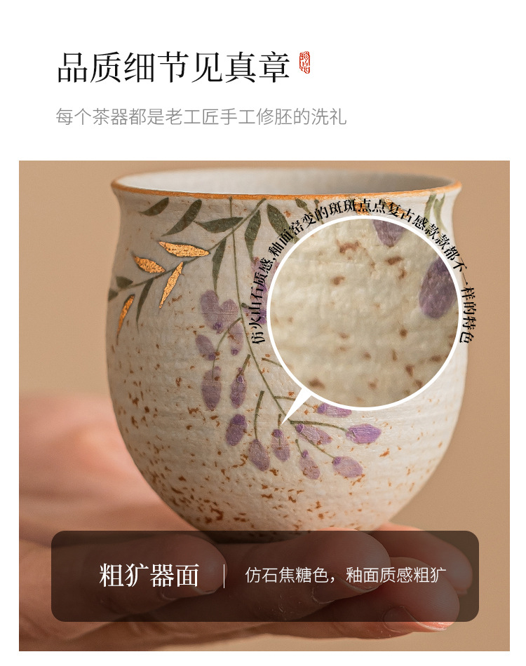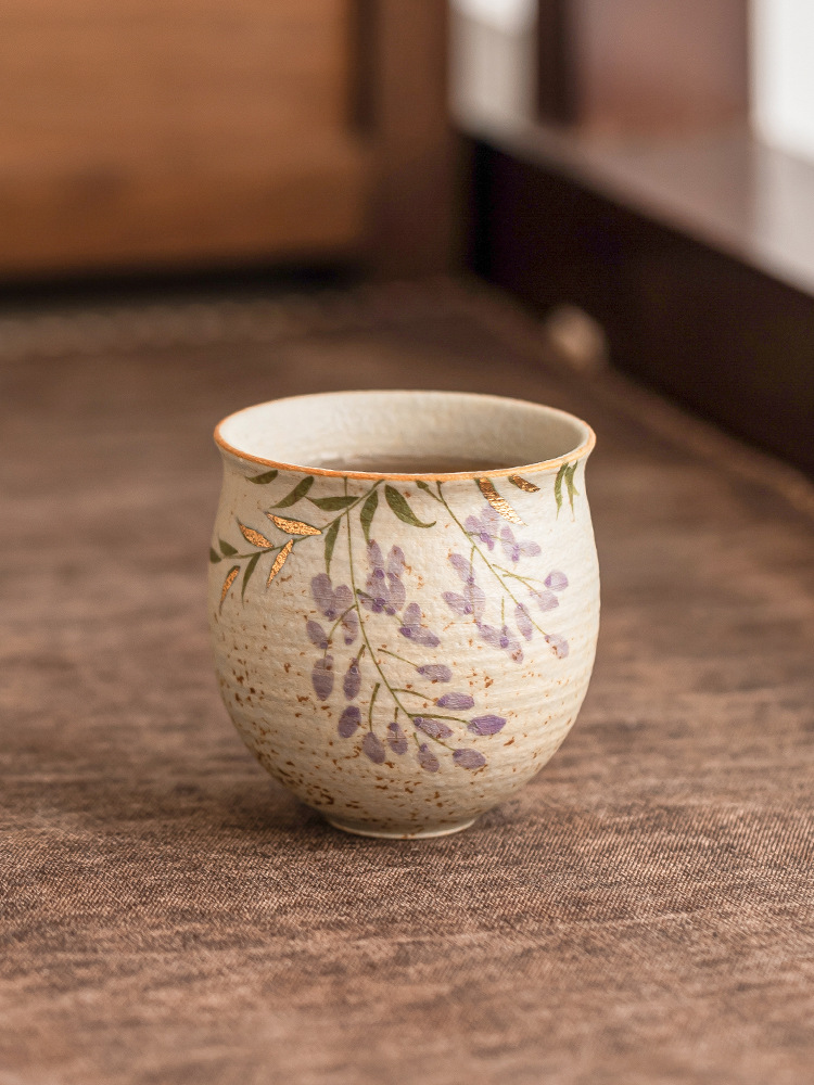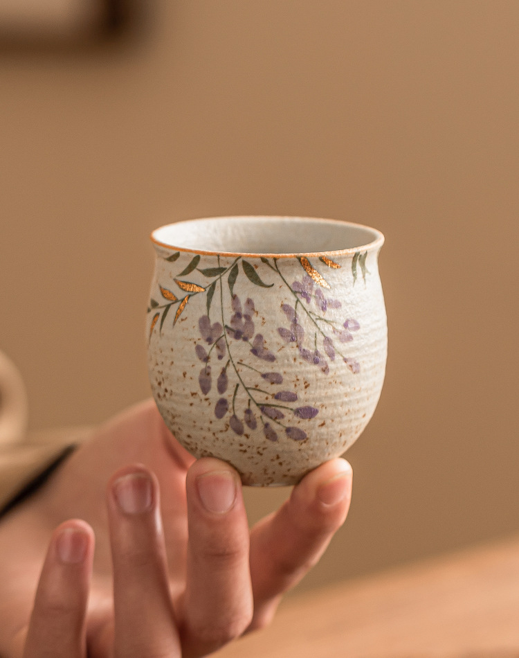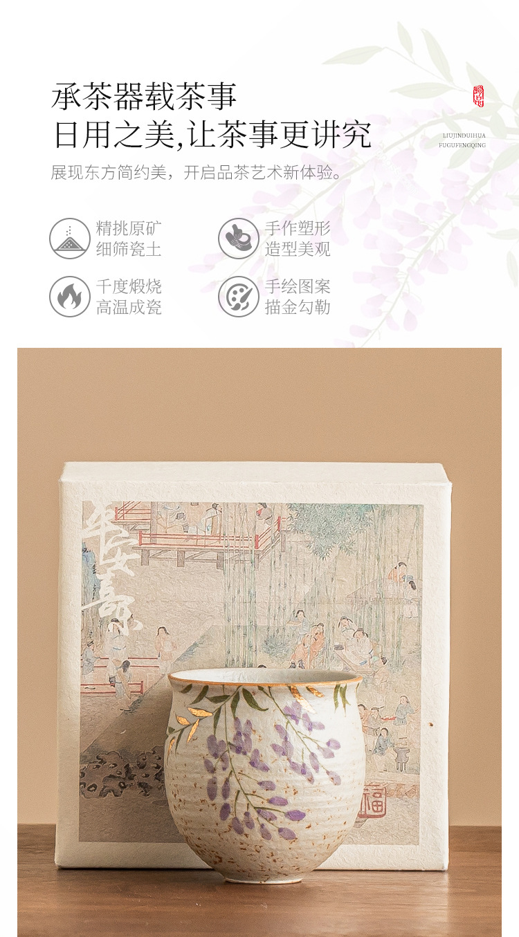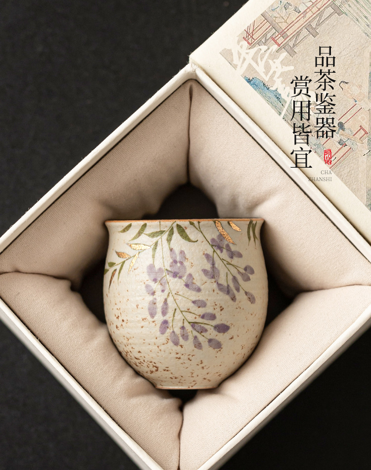 - Màu xanh và trắng, đá lửa đỏ, cốc chủ cao cấp, hoa tử đằng vẽ tay bằng vàng, cốc uống trà bằng gốm sứ gia dụng