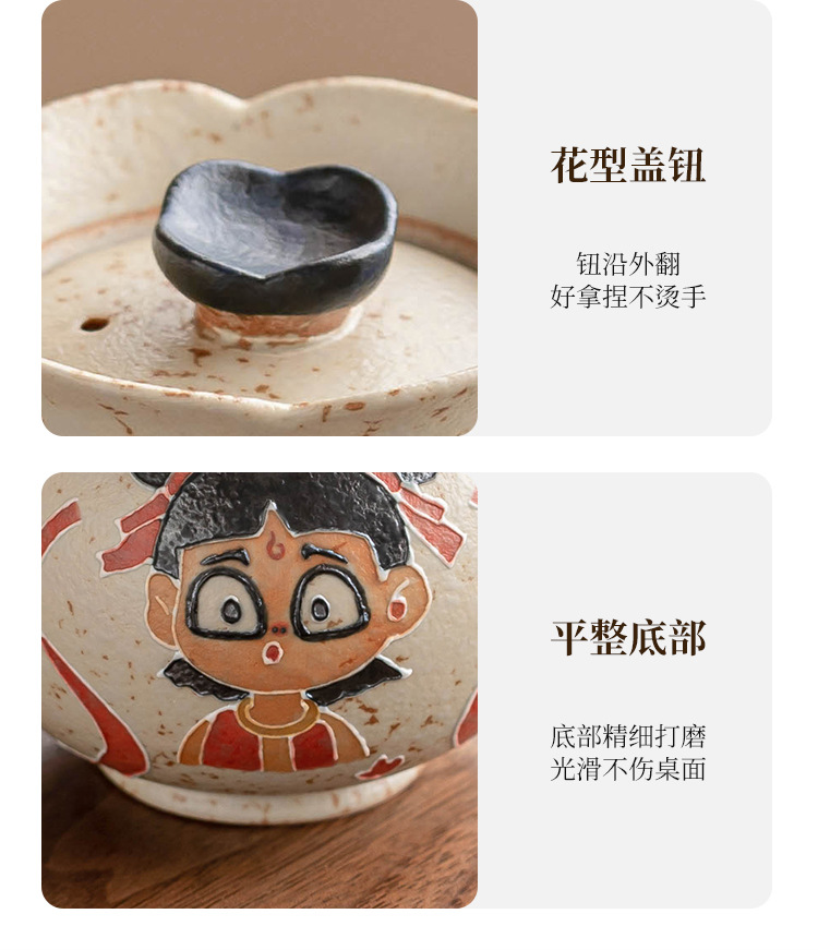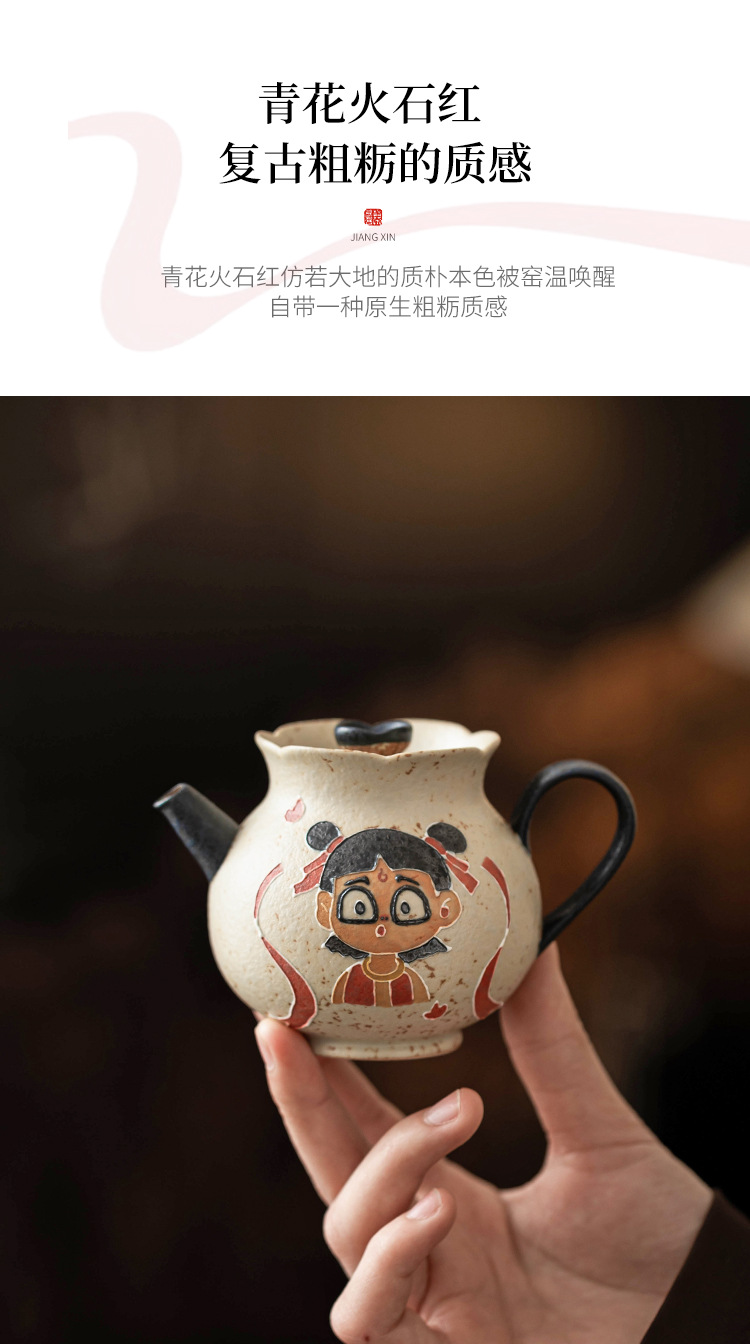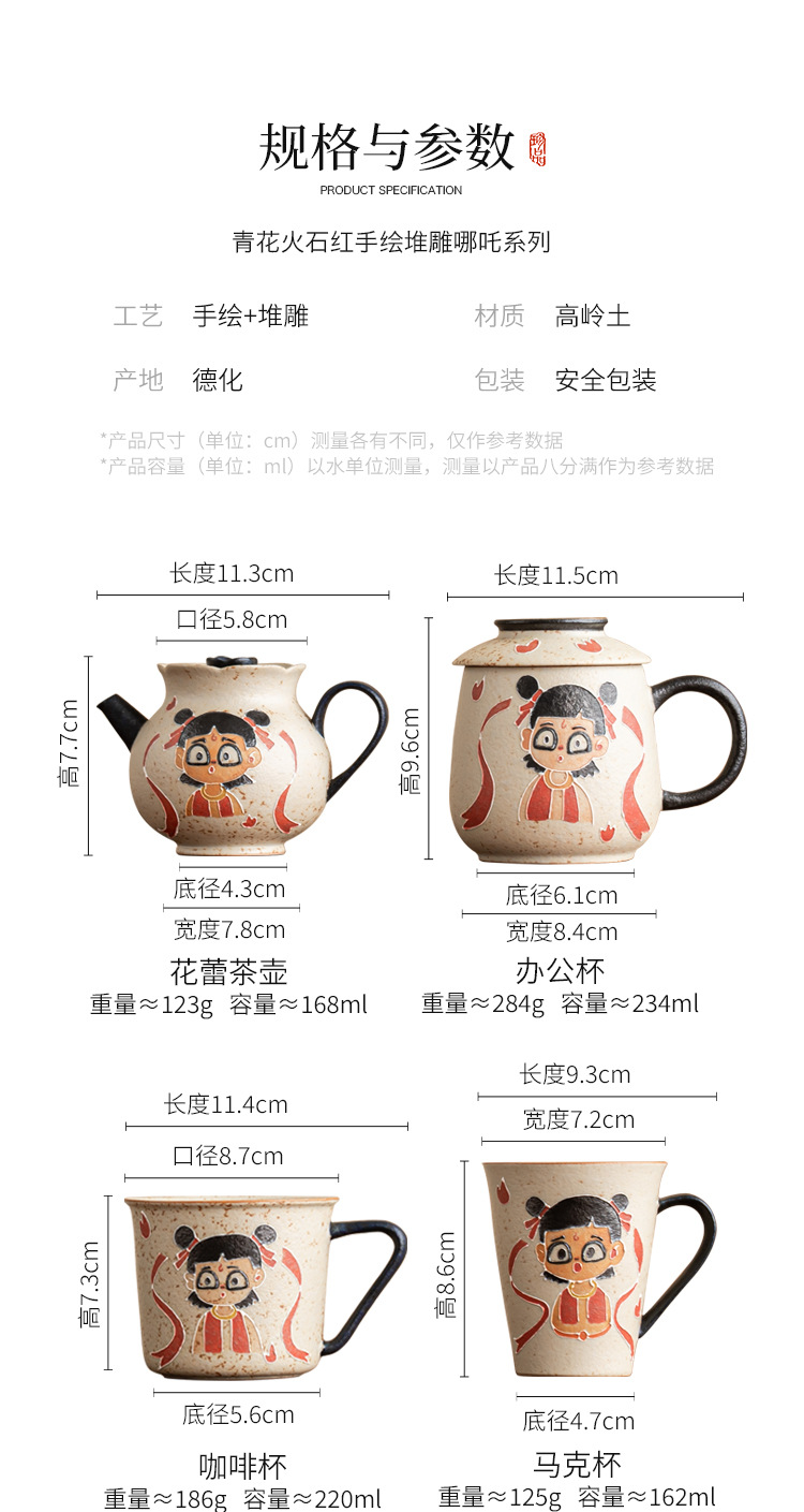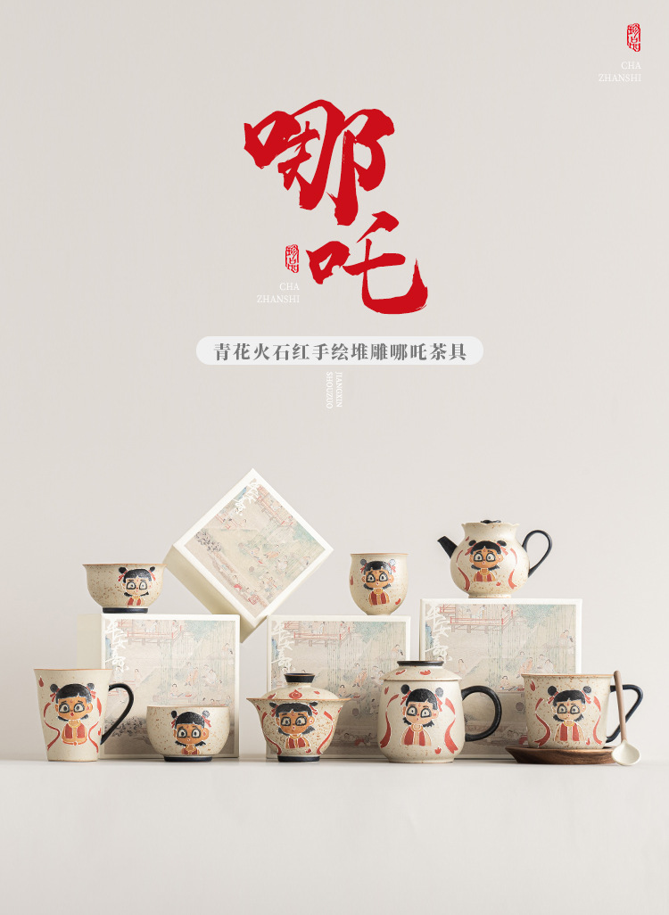 Màu xanh và trắng đá lửa đỏ Nezha Naohai tách cà phê tách trà ấm trà có nắp bát cốc cốc trà sáng tạo cao cấp gói đơn