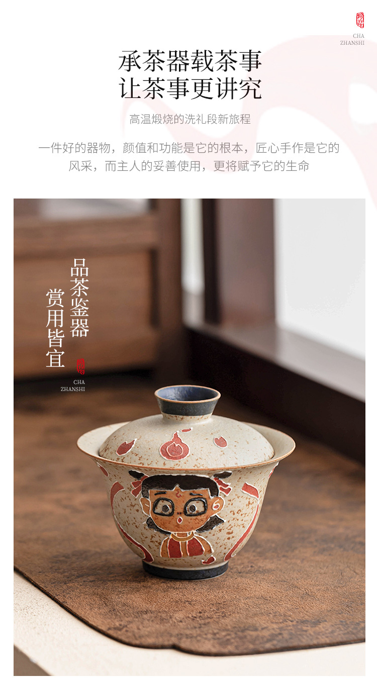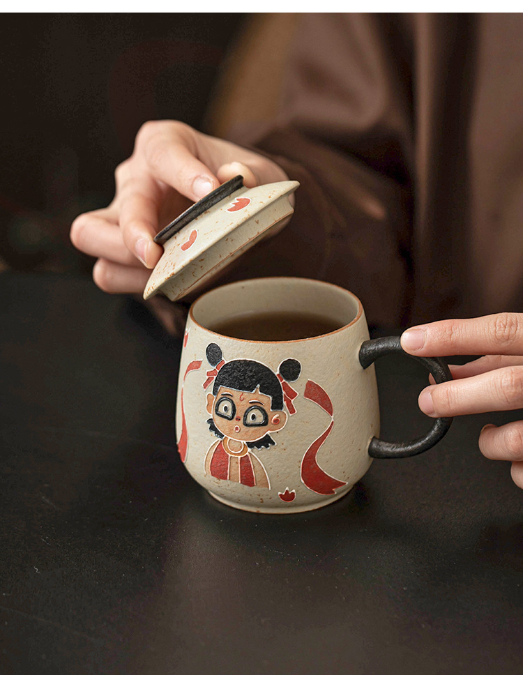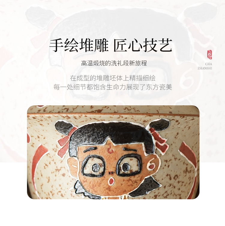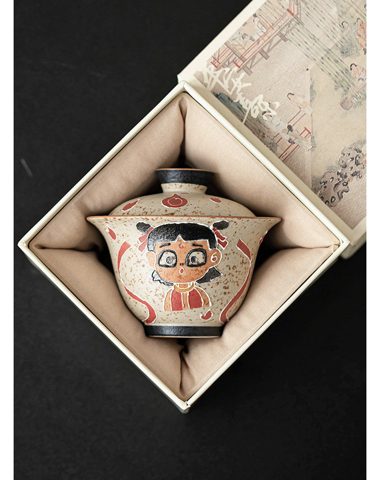 Màu xanh và trắng đá lửa đỏ Nezha Naohai tách cà phê tách trà ấm trà có nắp bát cốc cốc trà sáng tạo cao cấp gói đơn