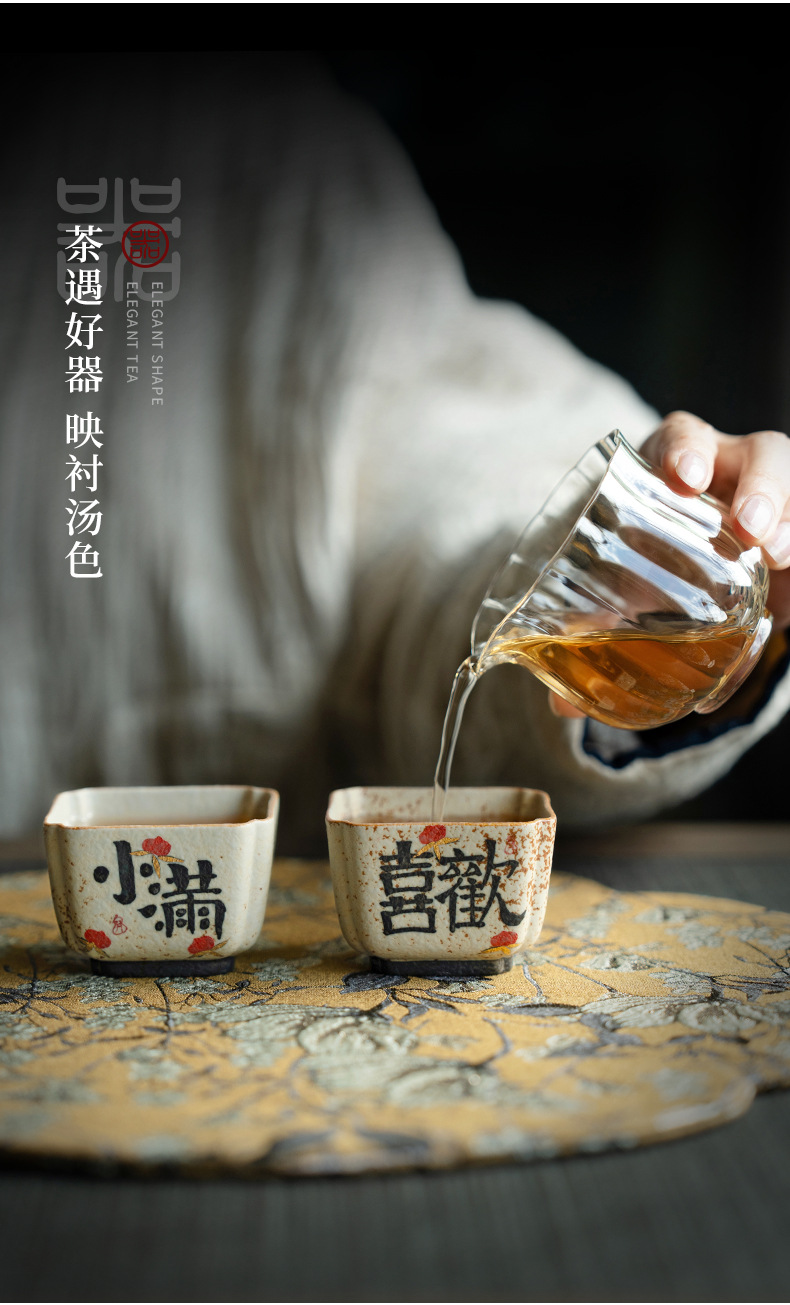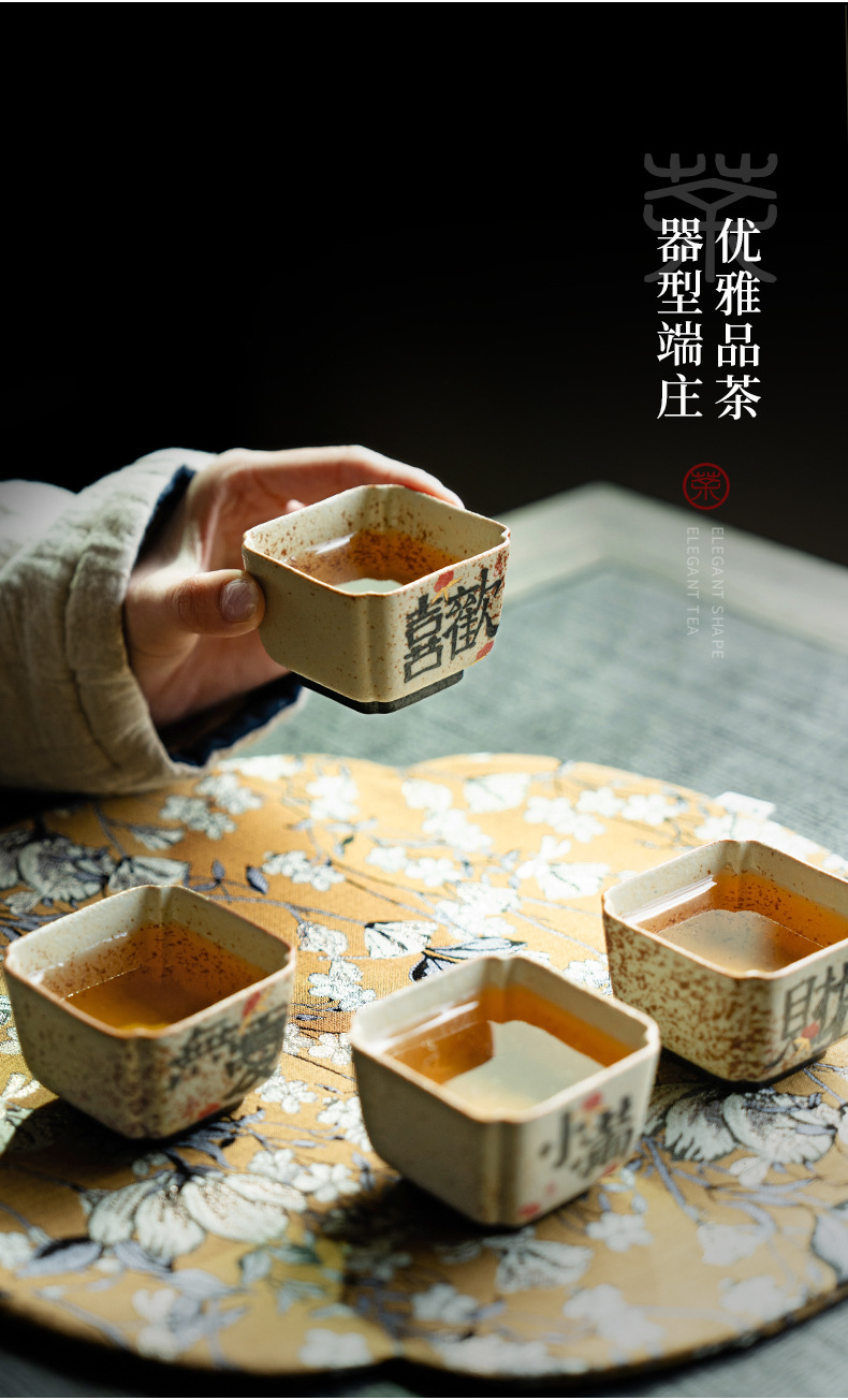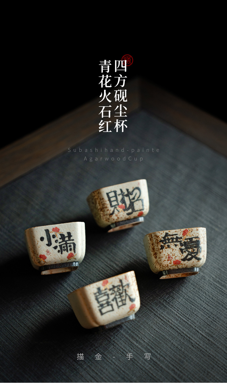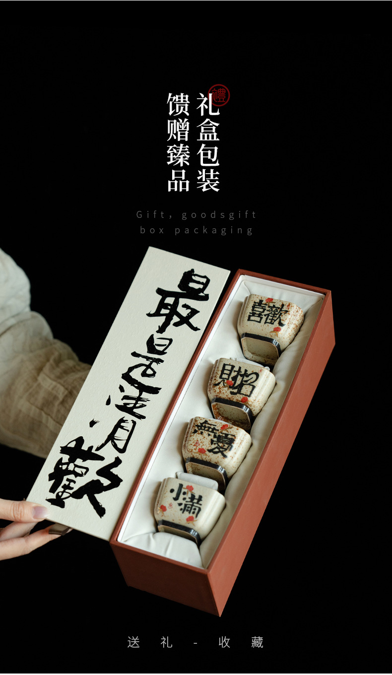 - Màu xanh và trắng đá lửa đỏ tinh khiết viết tay không lo lắng bốn hộp quà tặng bộ cốc chủ nhân tách trà Kung Fu