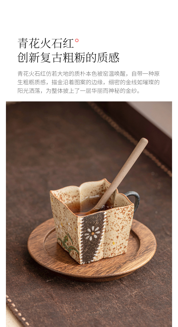 Màu xanh và trắng đá lửa màu đỏ tách cà phê espresso tách trà cốc chủ nhân vẽ tay hoa cúc nhỏ vẽ tay hoa cúc vuông cốc trà đơn