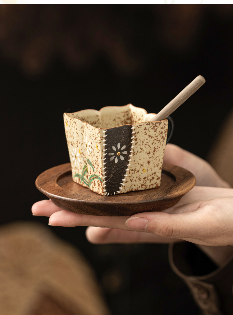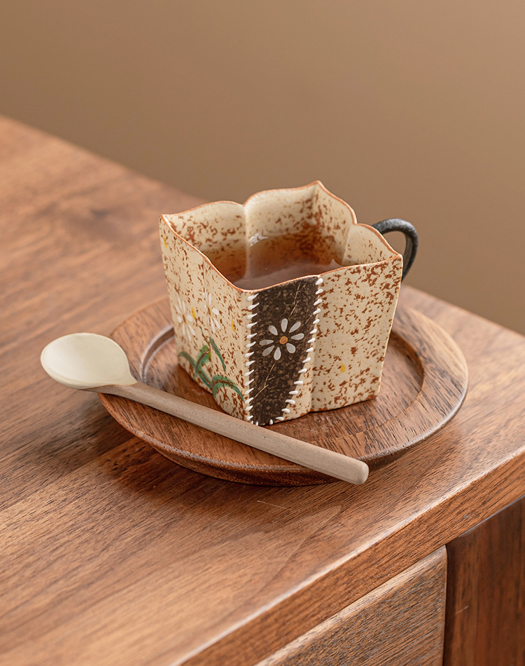 - Màu xanh và trắng đá lửa màu đỏ tách cà phê espresso tách trà cốc chủ nhân vẽ tay hoa cúc nhỏ vẽ tay hoa cúc vuông cốc trà đơn