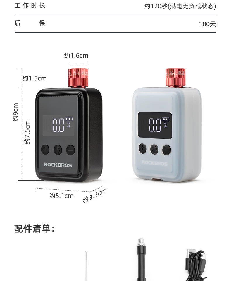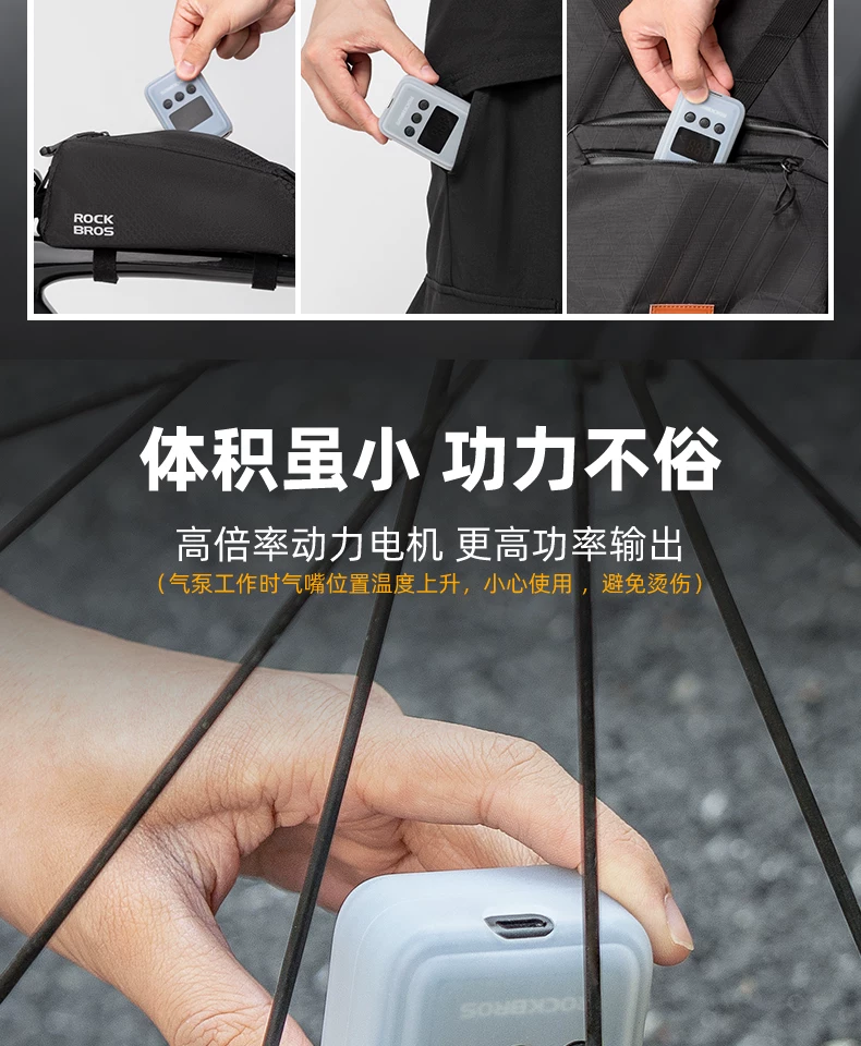 Máy bơm điện cầm tay khẩn cấp Rock Brothers dành cho xe đạp leo núi và xe đạp đường trường, máy bơm bơm hơi bóng rổ và bóng đá, mini áp suất cao