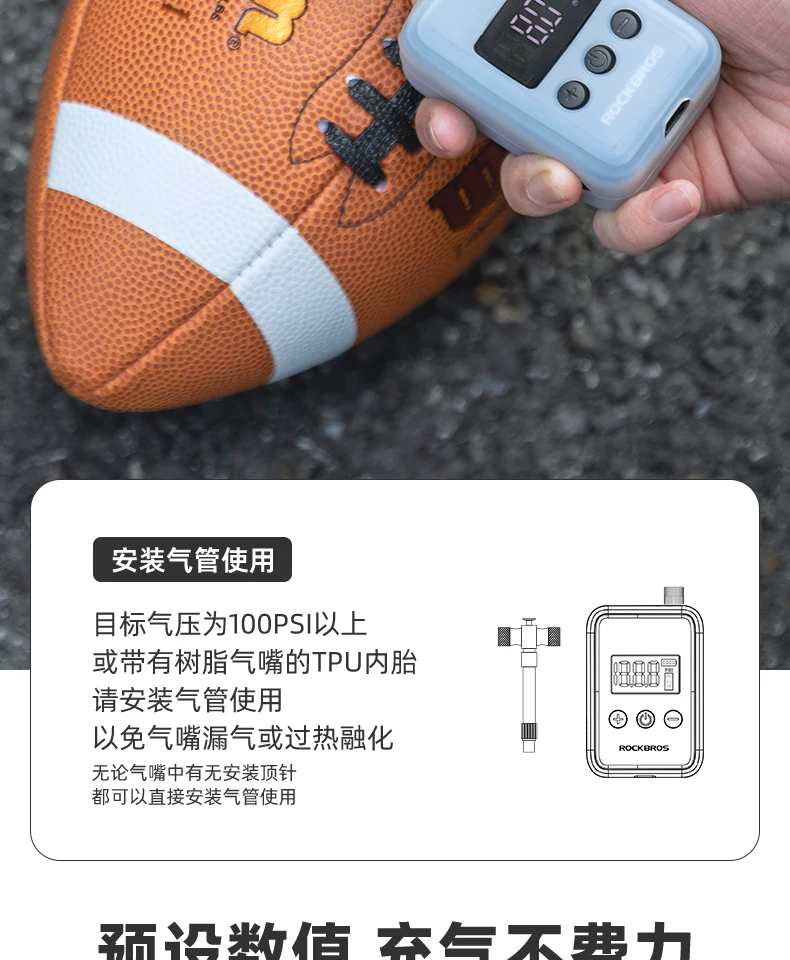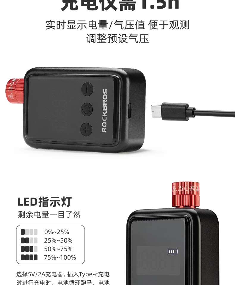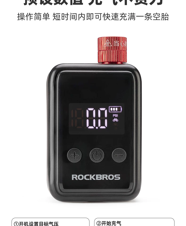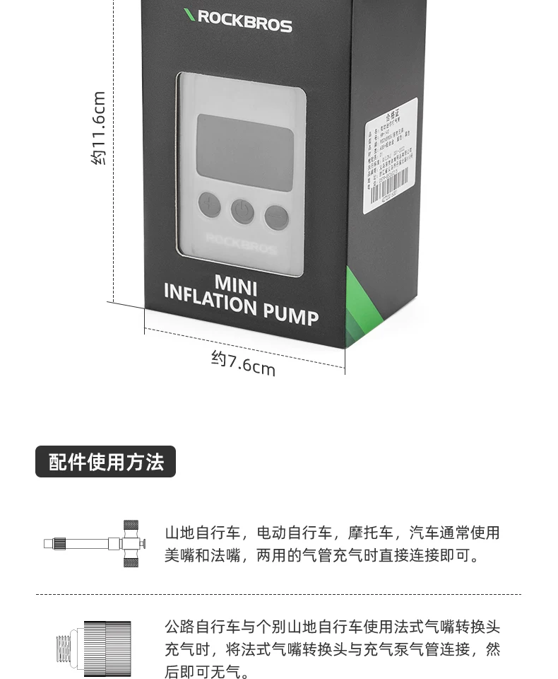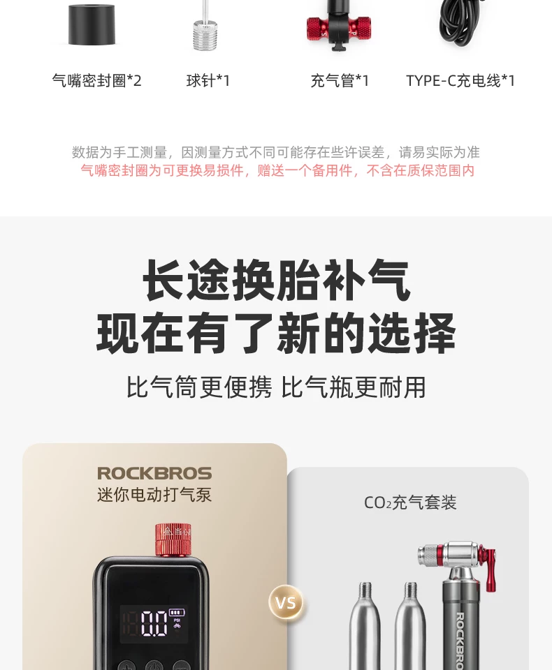 - Máy bơm điện cầm tay khẩn cấp Rock Brothers dành cho xe đạp leo núi và xe đạp đường trường, máy bơm bơm hơi bóng rổ và bóng đá, mini áp suất cao