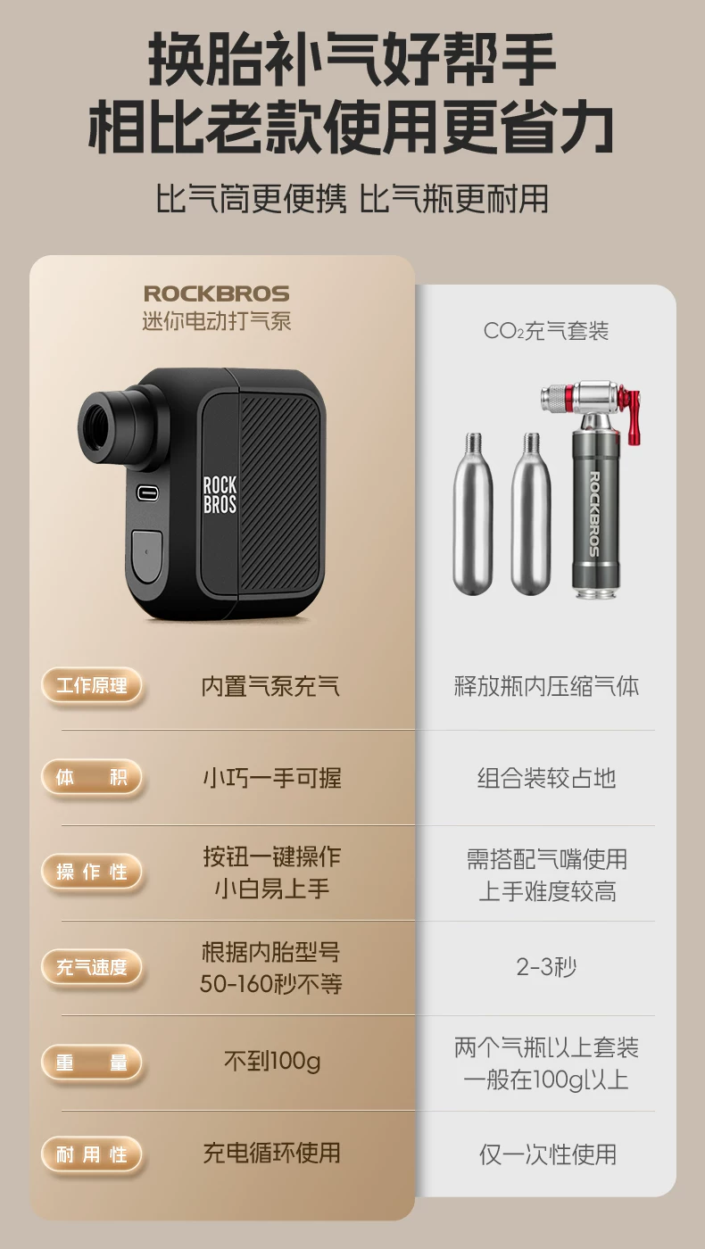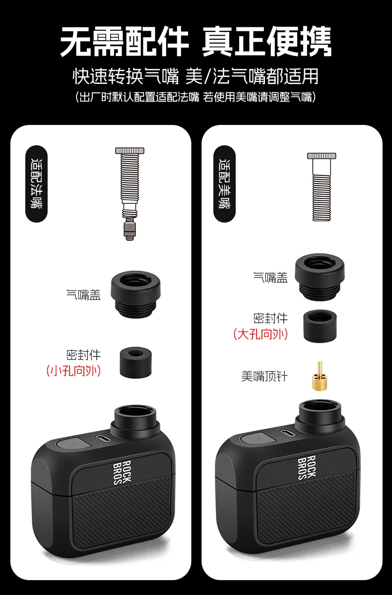 - Máy bơm điện Rock Brothers mini di động, sạc lại được, không dây, dùng cho xe đạp đường trường, xe đạp leo núi, bóng rổ, bóng đá, bơm hơi