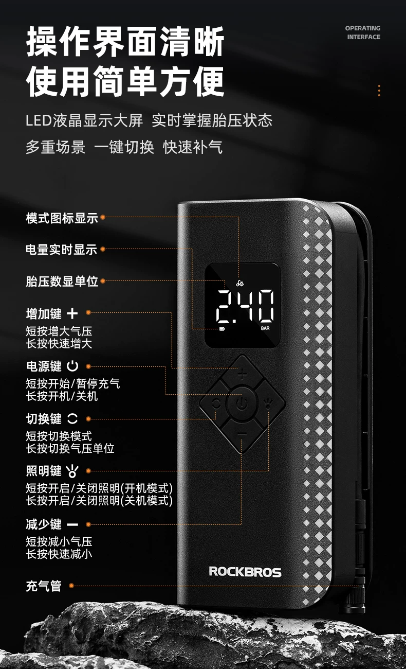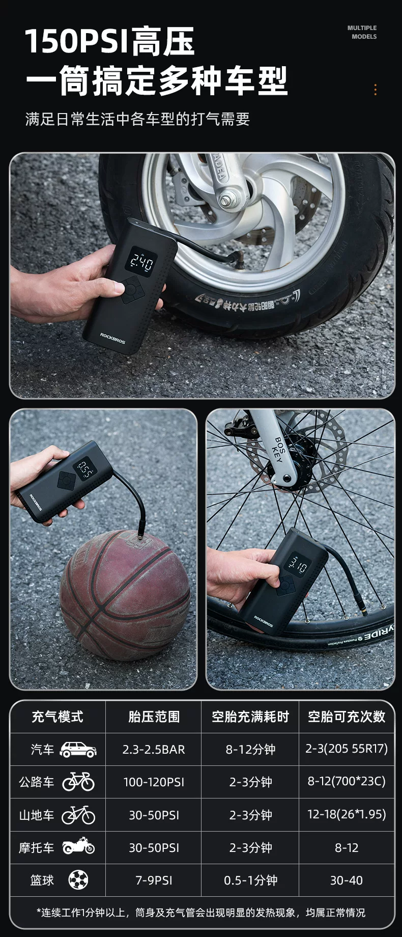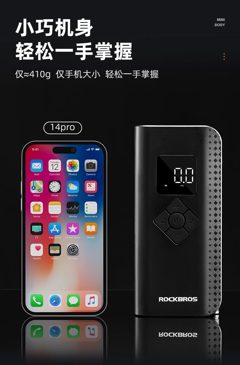 - Máy bơm không khí điện Rock Brothers Máy bơm hơi cầm tay không dây áp suất cao dành cho xe đạp, xe máy, ô tô mini và đồ bơm hơi.