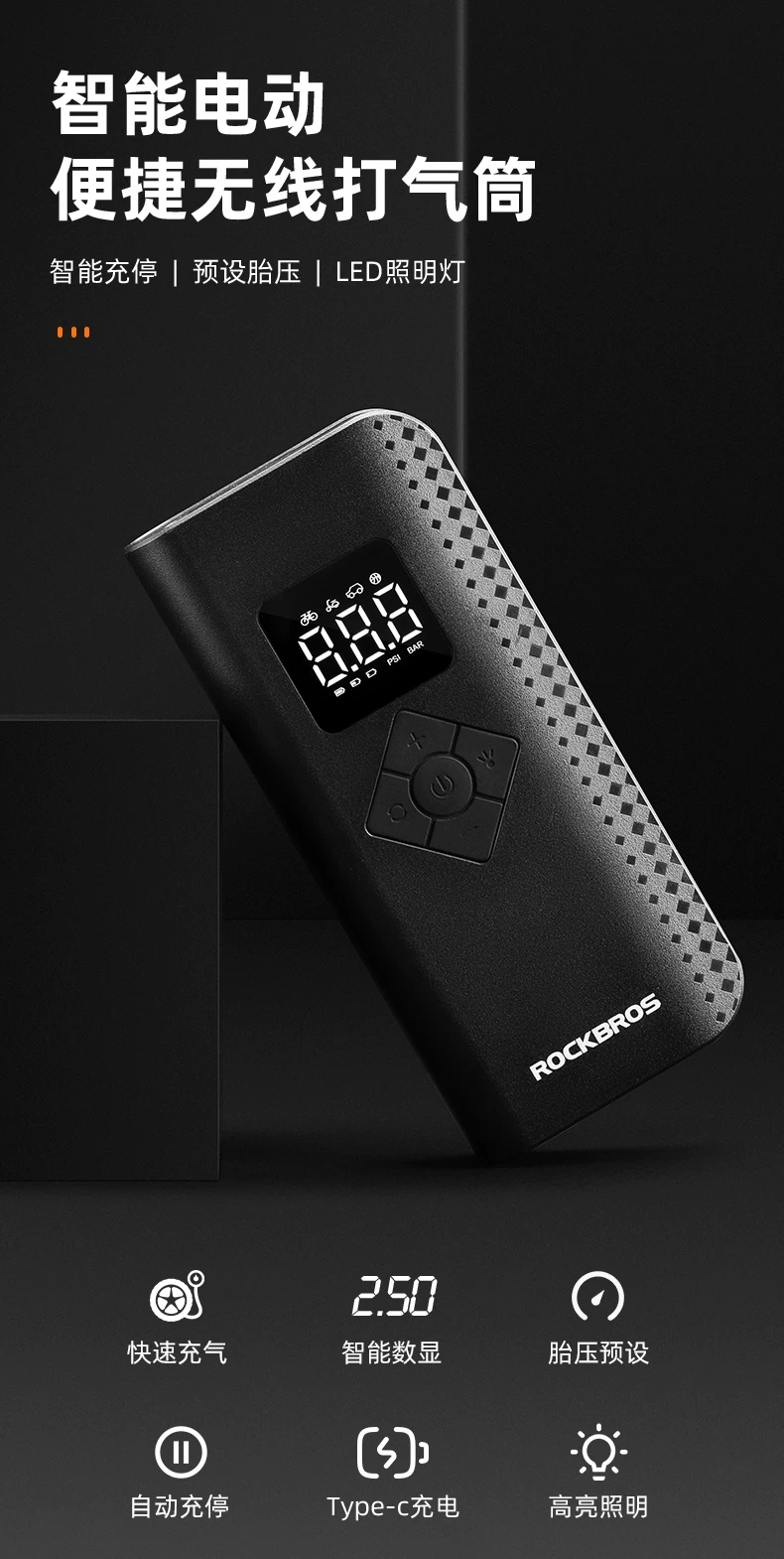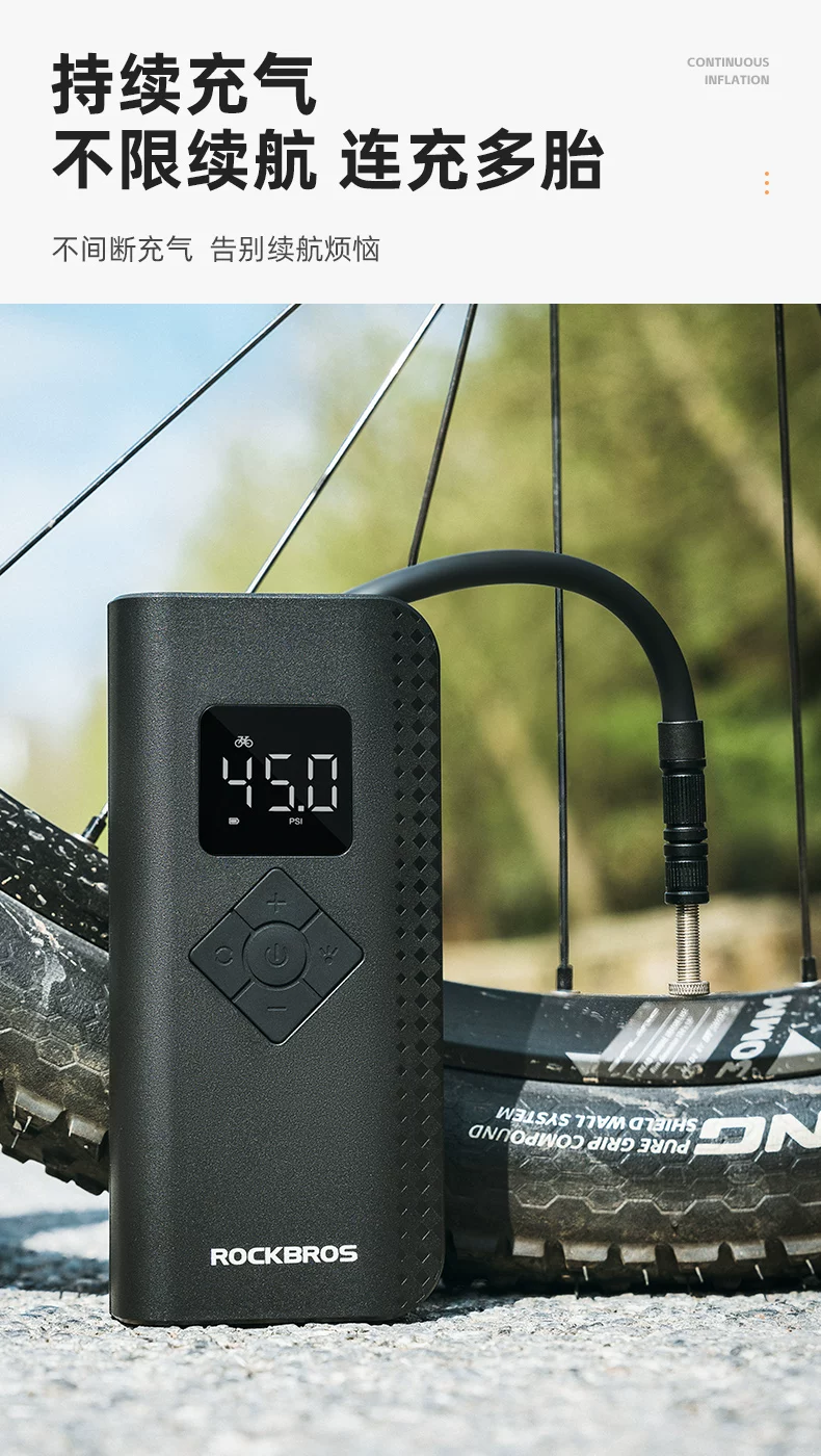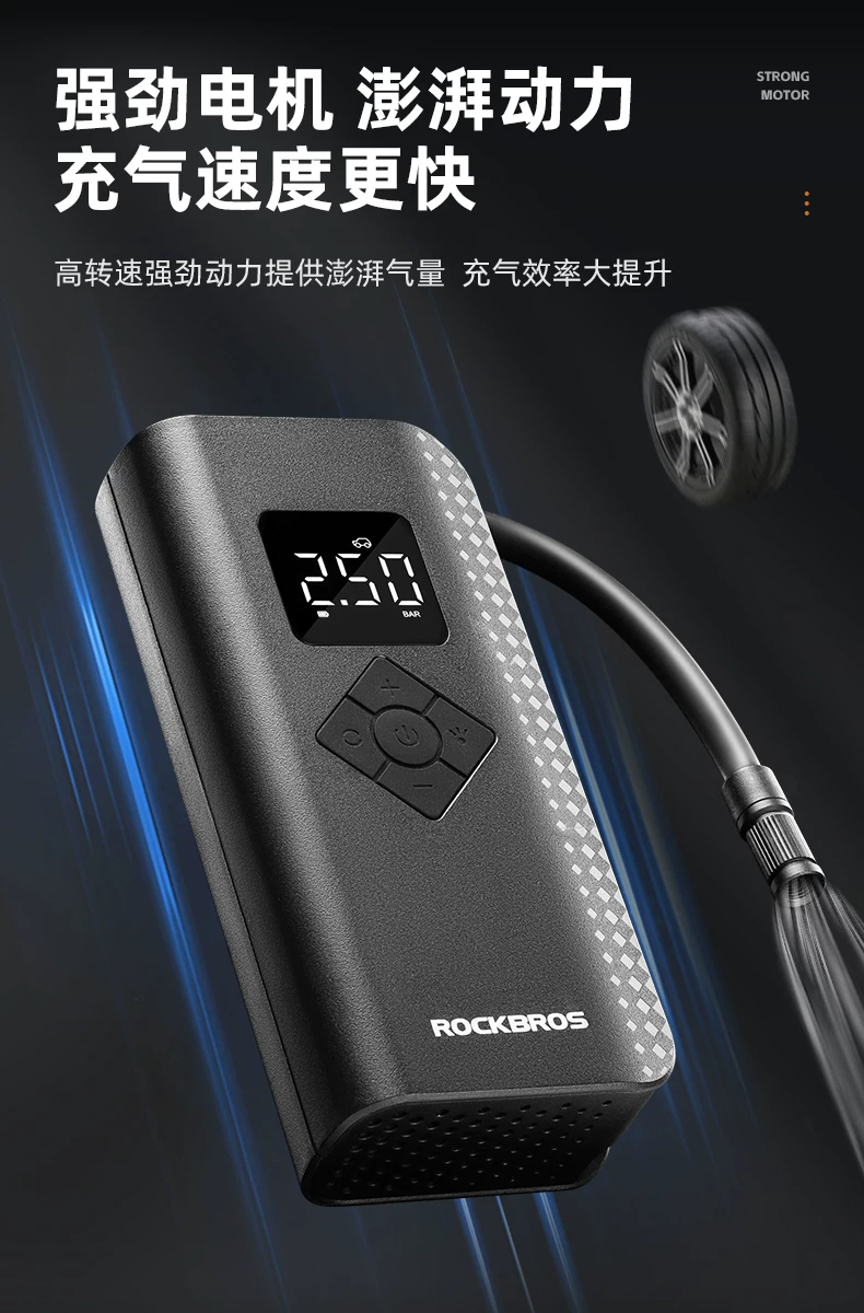 Máy bơm không khí điện Rock Brothers Máy bơm hơi cầm tay không dây áp suất cao dành cho xe đạp, xe máy, ô tô mini và đồ bơm hơi.