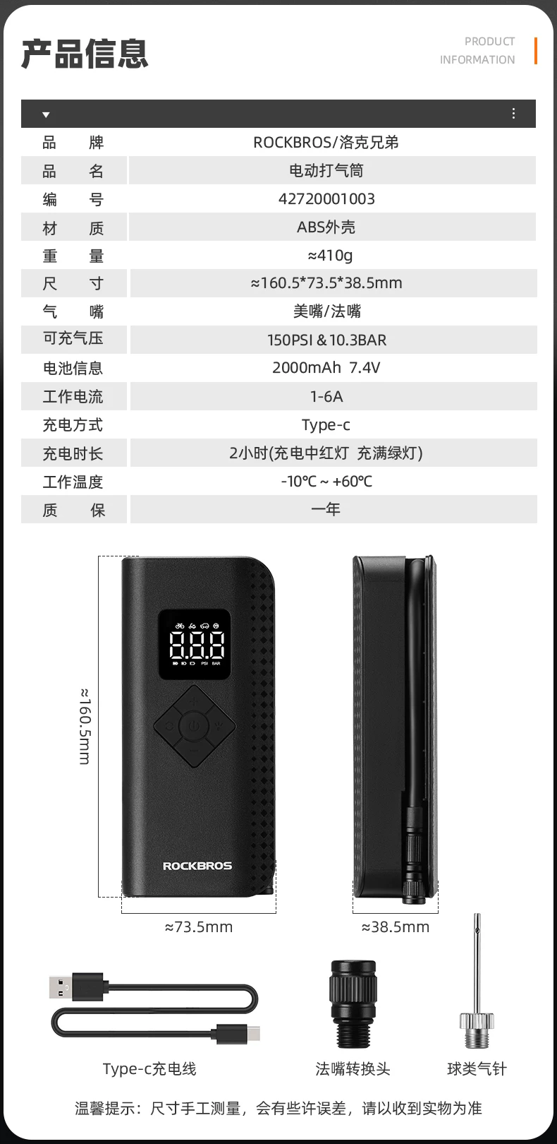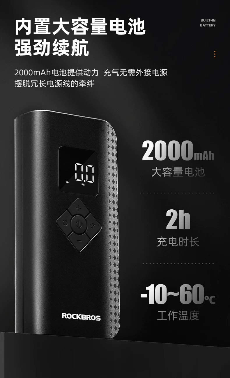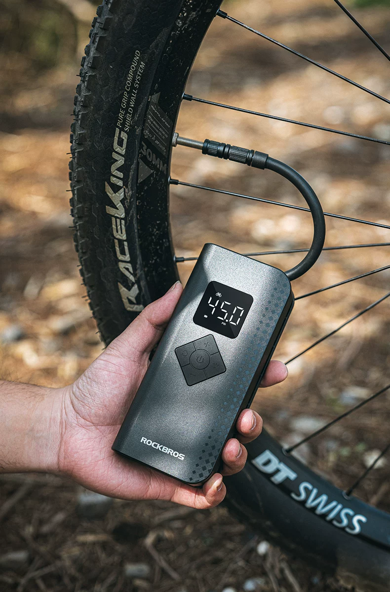 Máy bơm không khí điện Rock Brothers Máy bơm hơi cầm tay không dây áp suất cao dành cho xe đạp, xe máy, ô tô mini và đồ bơm hơi.
