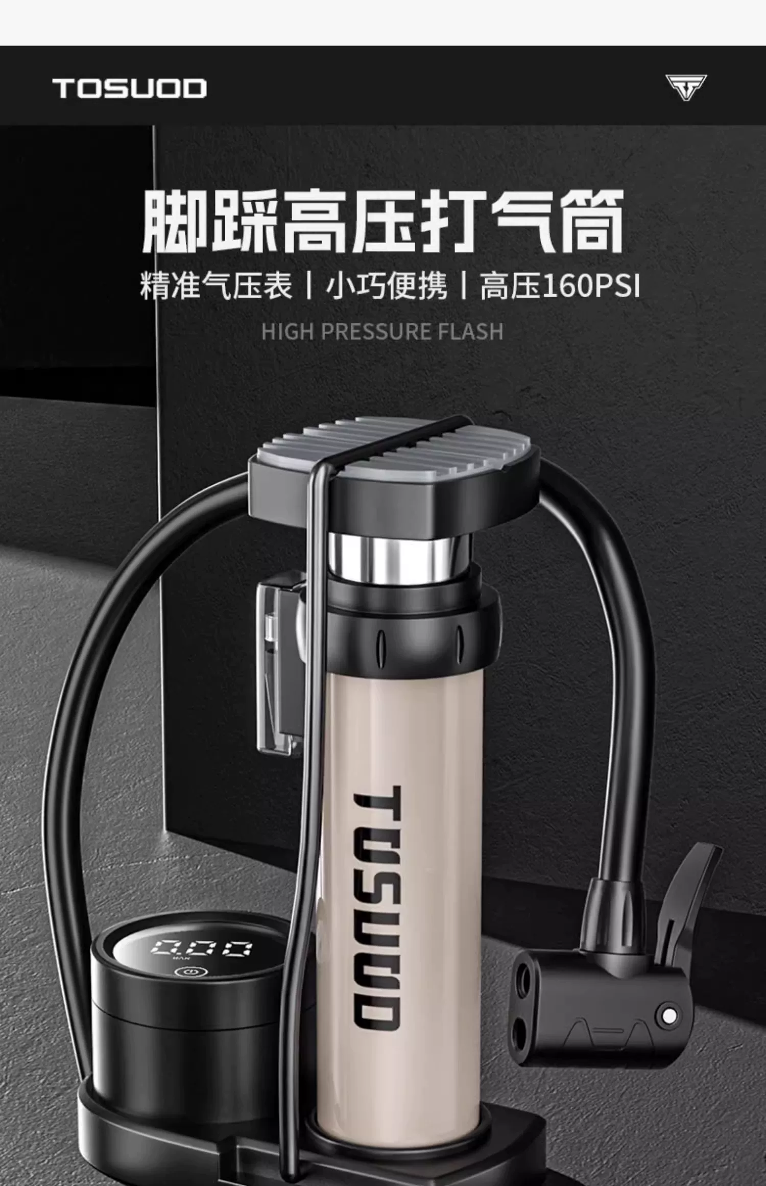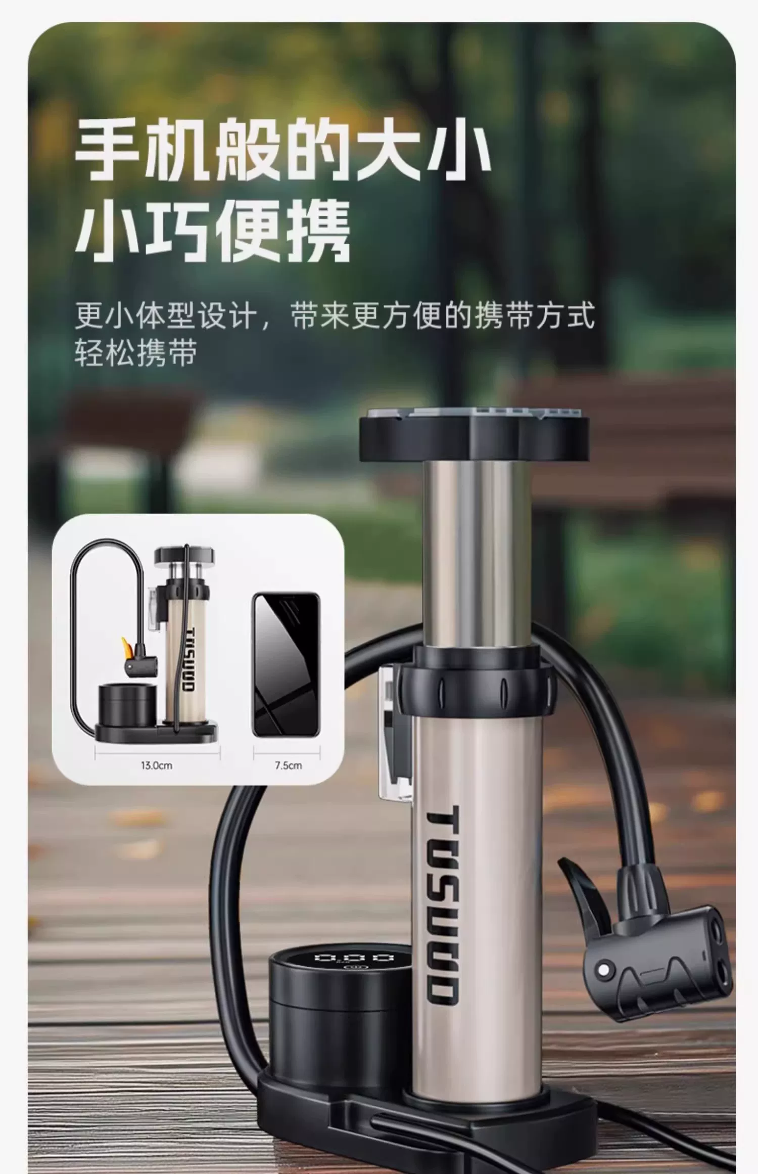 Máy bơm xe đạp Captain Tas, máy bơm khí áp suất cao, máy bơm điện cho xe điện, ống hơi đa năng, di động