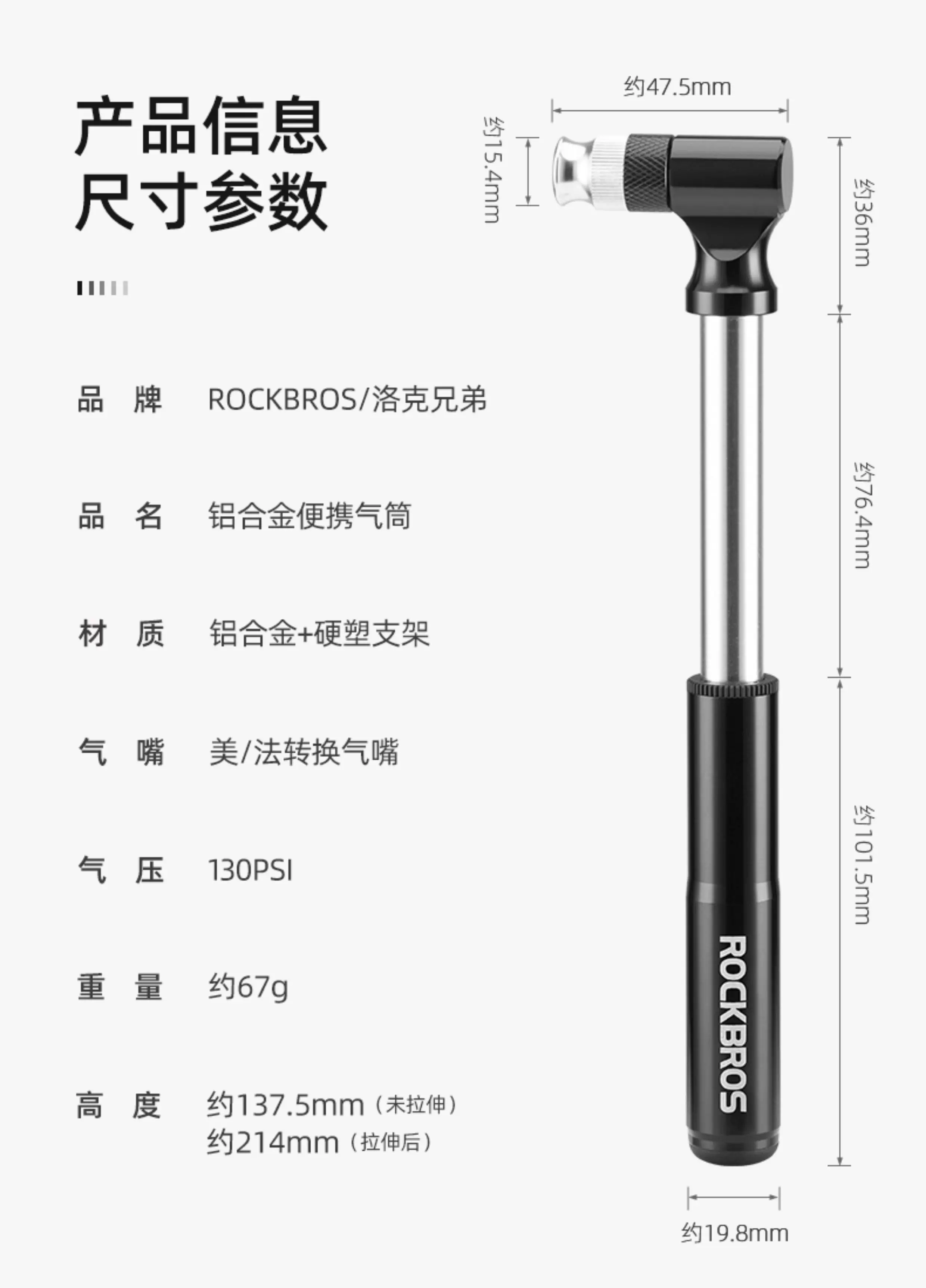 - Máy bơm xe đạp di động Rock Brothers mini cao áp xe đạp leo núi xe đạp đường bộ đi xe đạp tại nhà máy bơm không khí bóng rổ