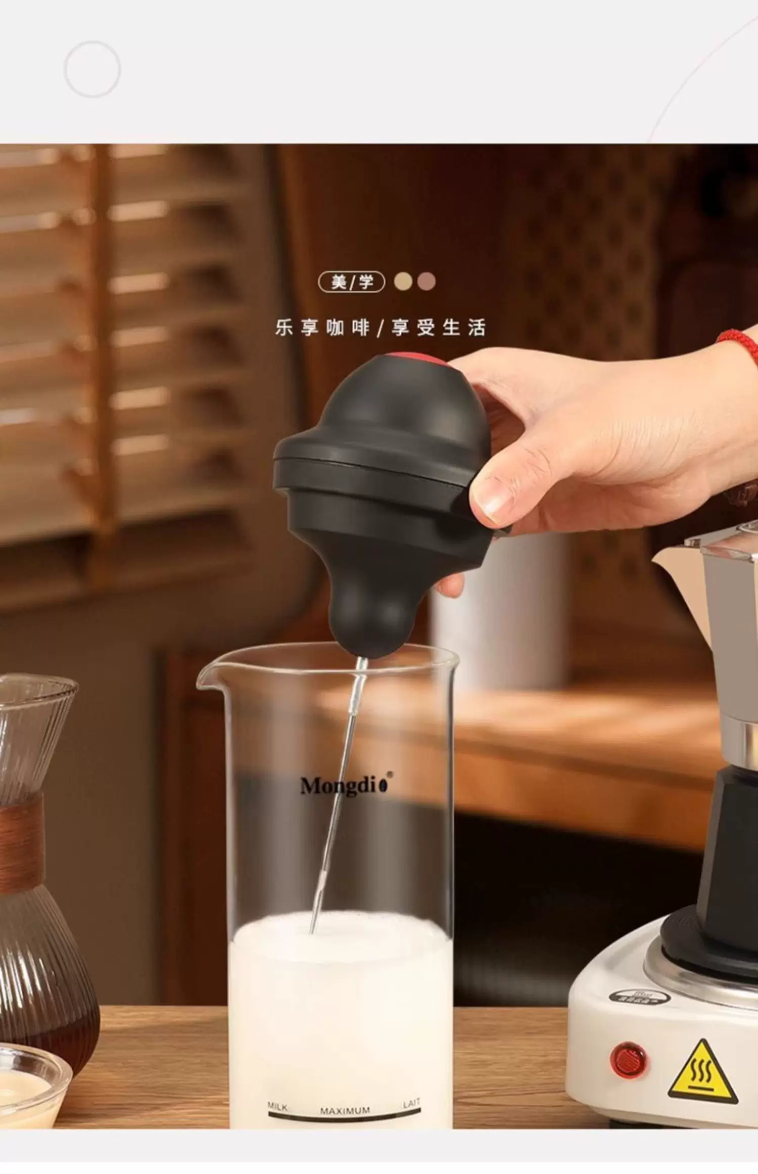 - Máy đánh bọt sữa điện Mongdio, dụng cụ đánh bọt sữa, que khuấy, bình đánh bọt sữa