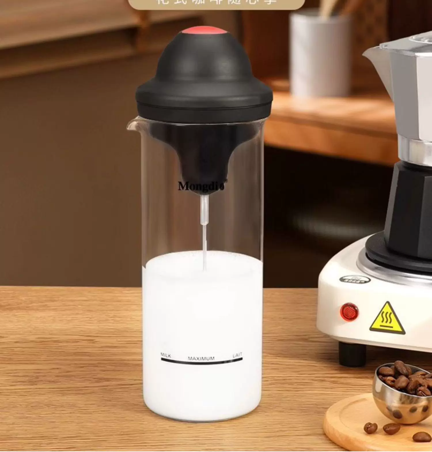 Máy đánh bọt sữa điện Mongdio, dụng cụ đánh bọt sữa, que khuấy, bình đánh bọt sữa