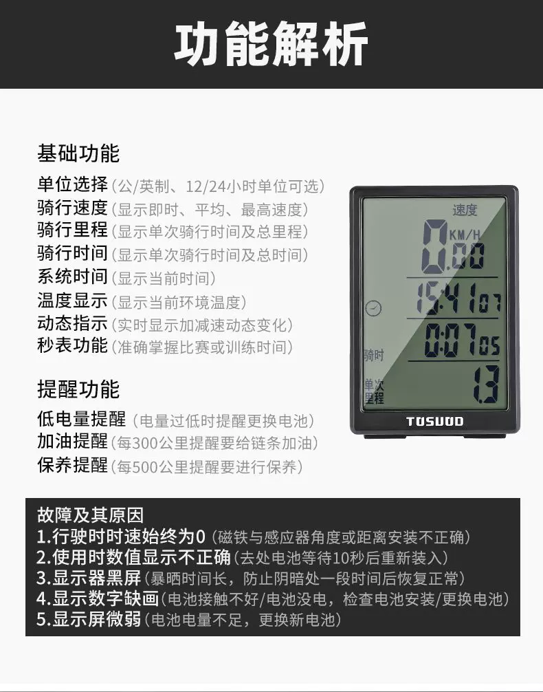 - Máy đo tốc độ xe đạp không dây Captain Tas, màn hình chống nước, thiết bị đo tốc độ mở rộng, đồng hồ đo tốc độ xe đạp leo núi
