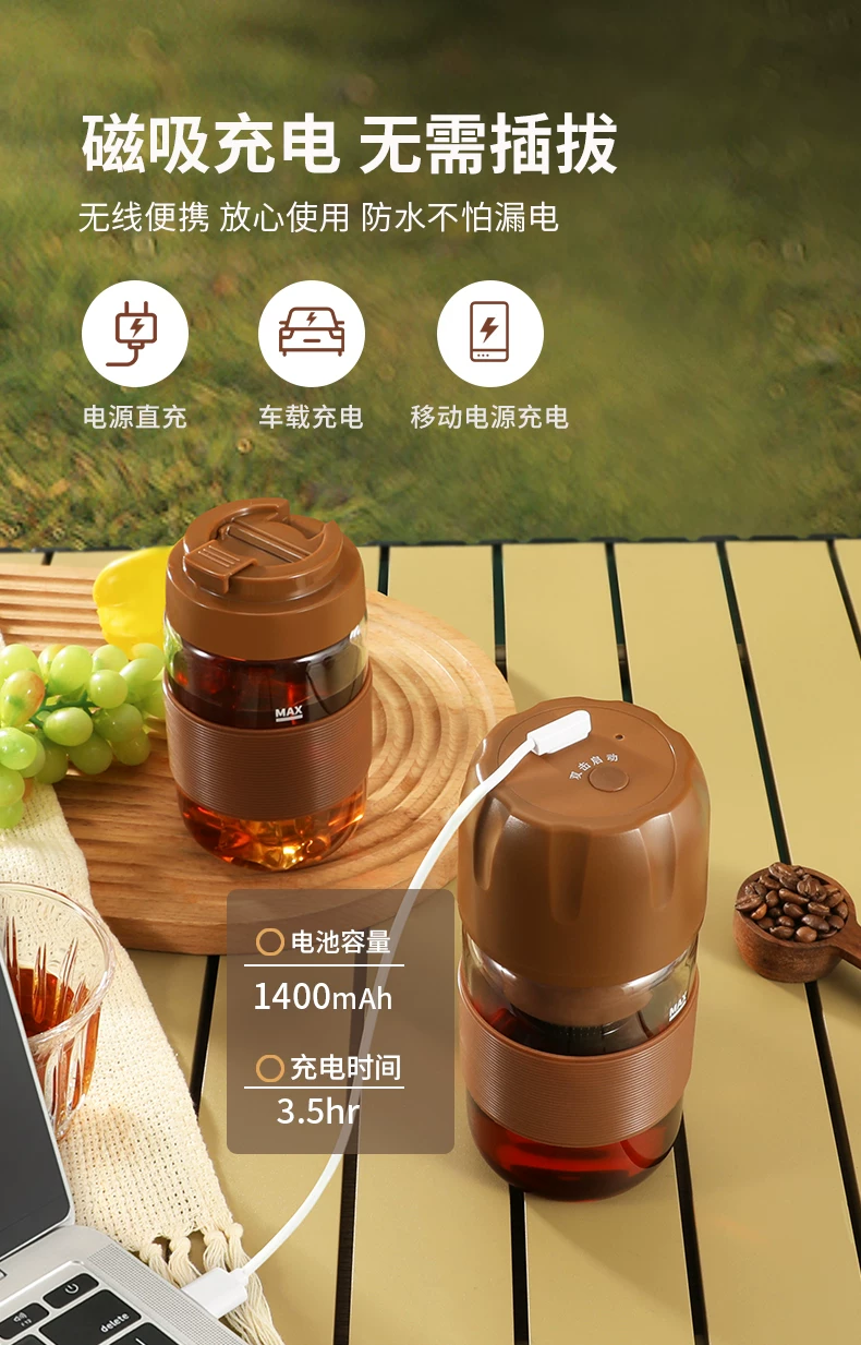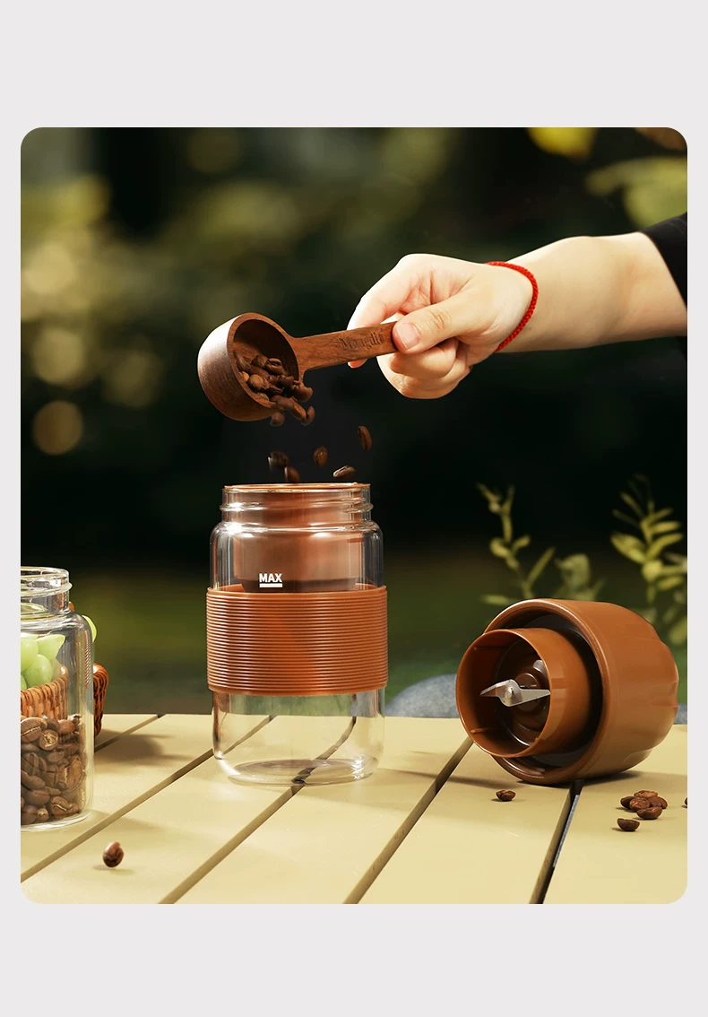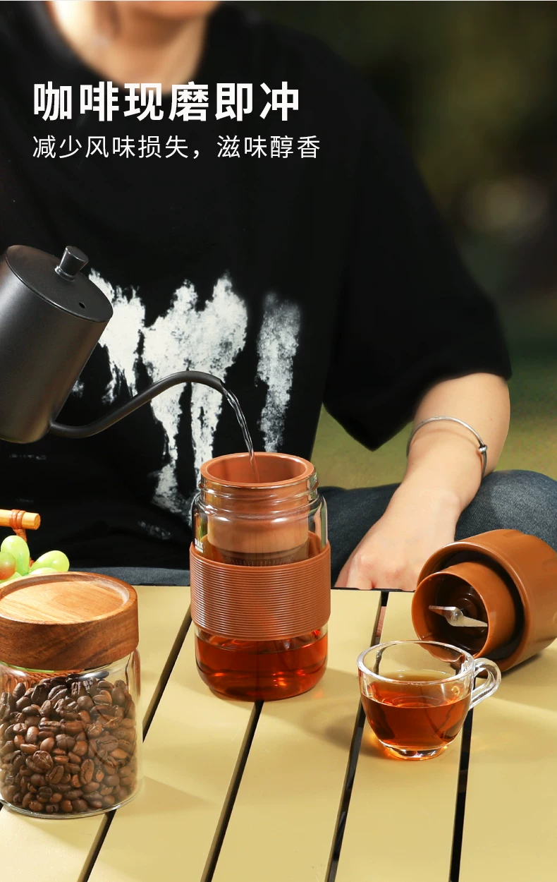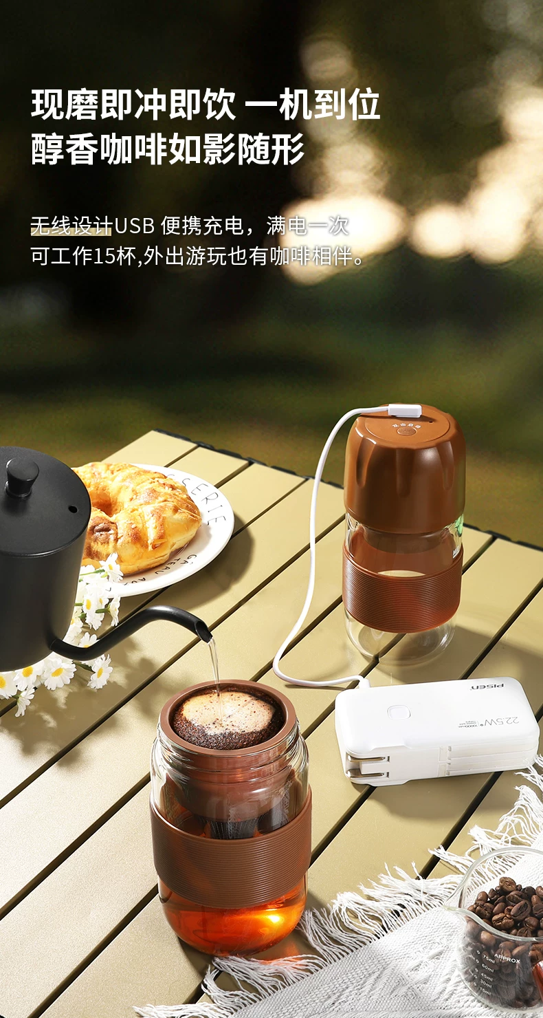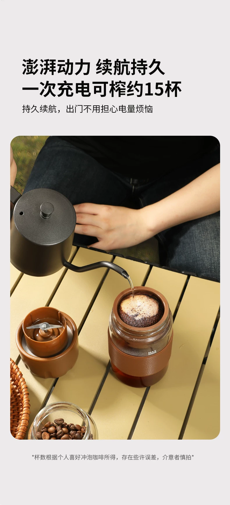 Máy pha cà phê cầm tay Mongdio, máy xay và pha cà phê ngoài trời tất cả trong một, máy xay cà phê điện gia đình nhỏ gọn, tích hợp cốc