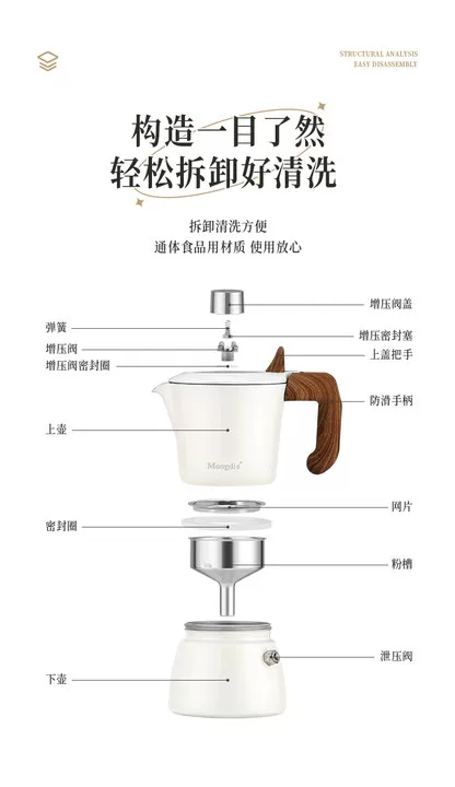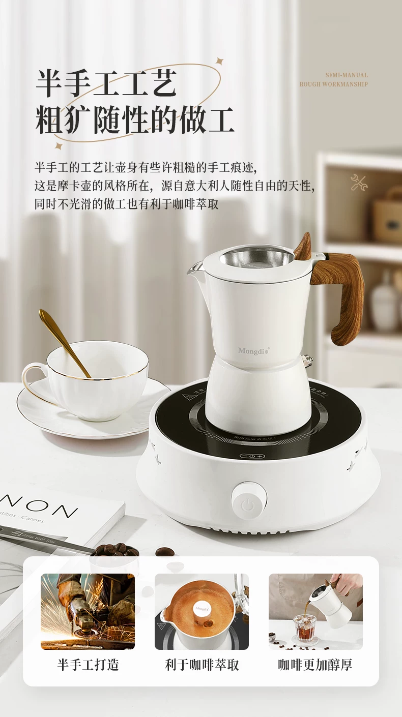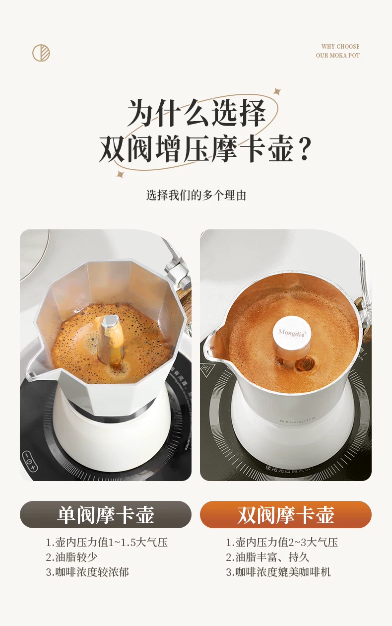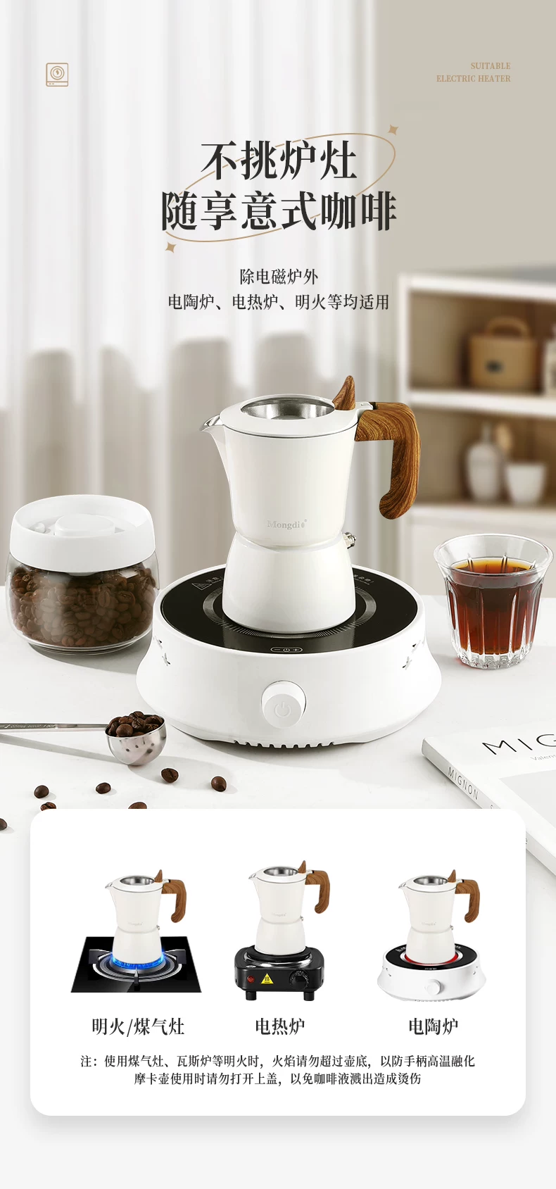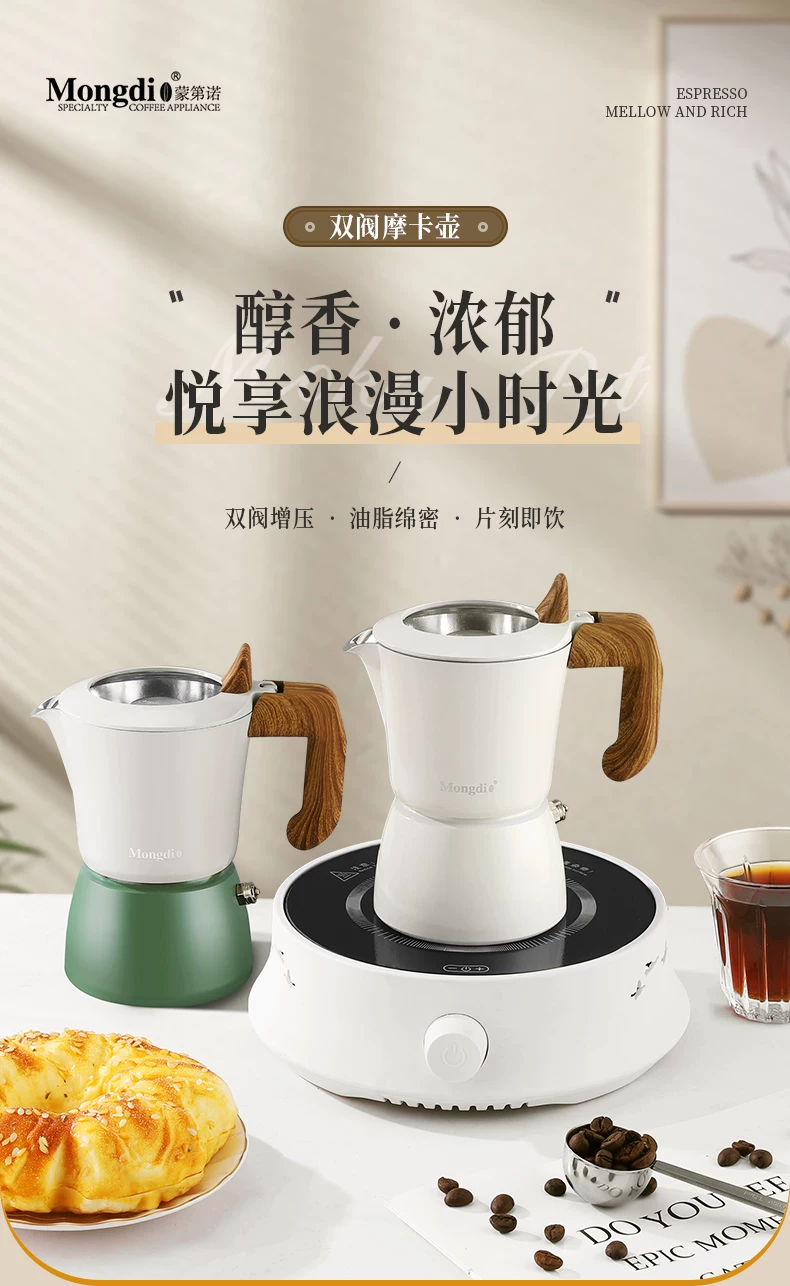 Máy pha cà phê espresso hai van Mongdio Moka, bộ pha cà phê thủ công tại nhà