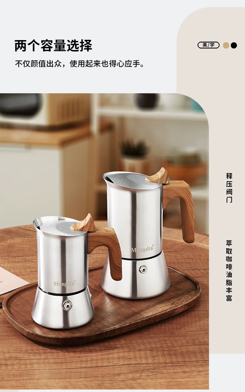 Máy pha cà phê Moka bằng thép không gỉ Mongdio, bộ dụng cụ pha cà phê Moka, bộ dụng cụ pha cà phê