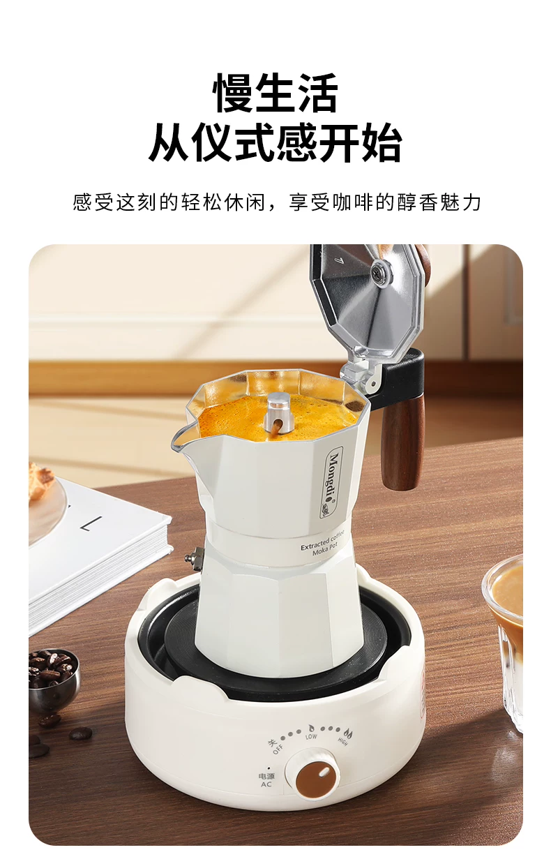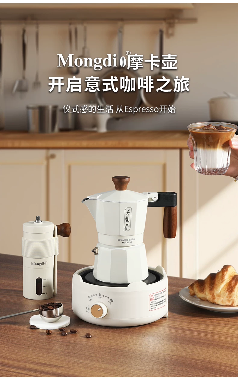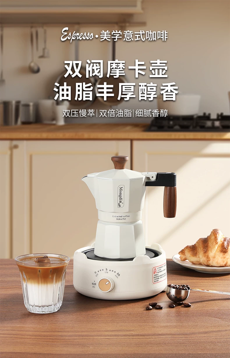 Máy pha cà phê moka hai van Mongdio, máy pha cà phê moka, máy pha cà phê thủ công, ấm pha cà phê, ấm chiết xuất cà phê, dụng cụ pha cà phê