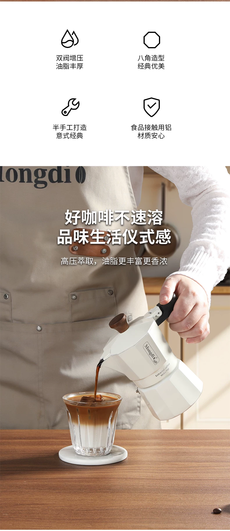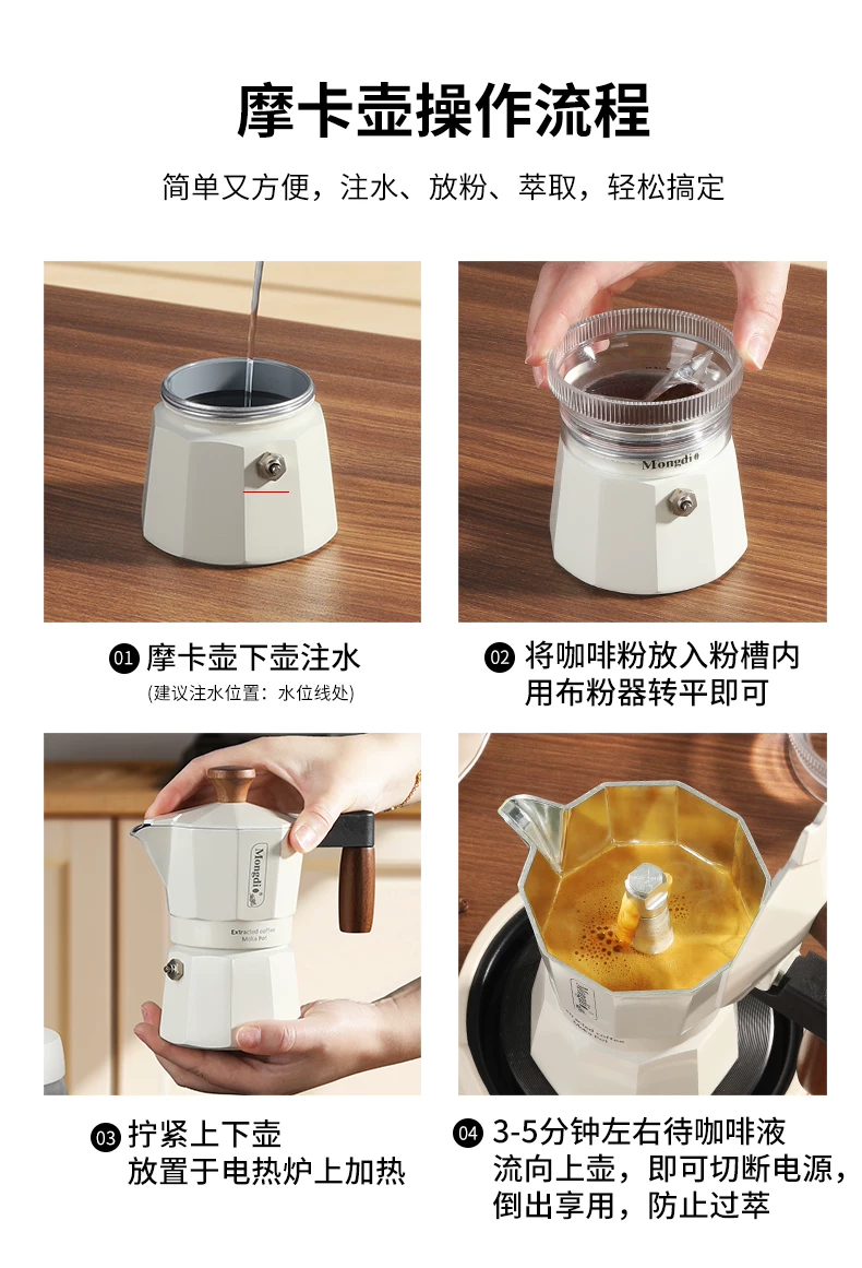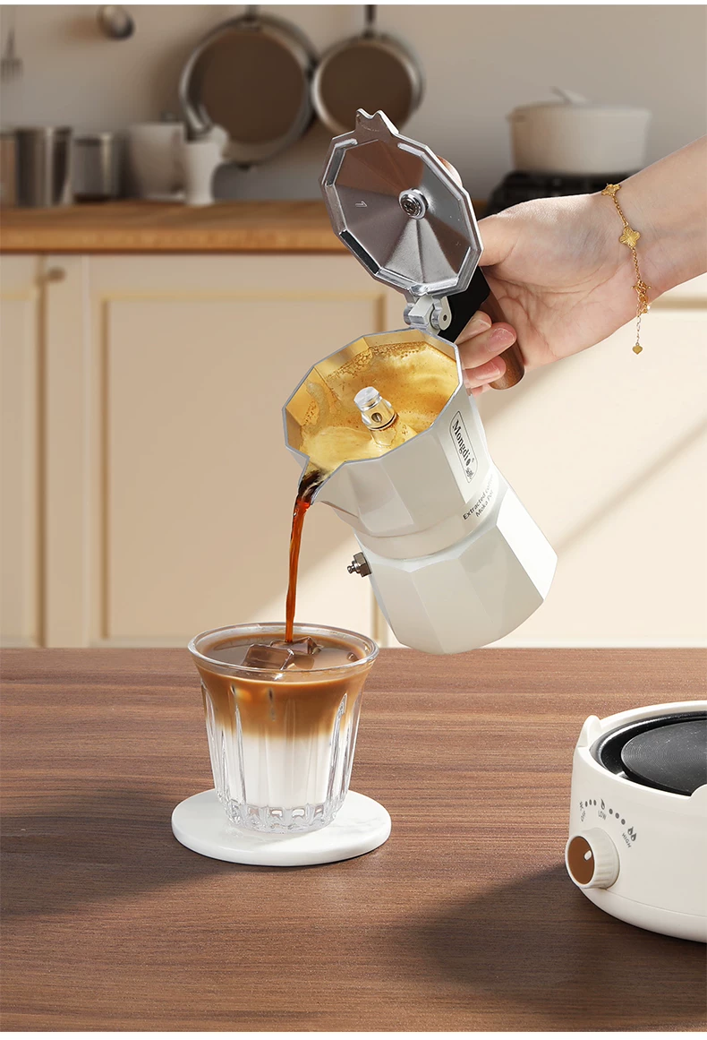 - Máy pha cà phê moka hai van Mongdio, máy pha cà phê moka, máy pha cà phê thủ công, ấm pha cà phê, ấm chiết xuất cà phê, dụng cụ pha cà phê
