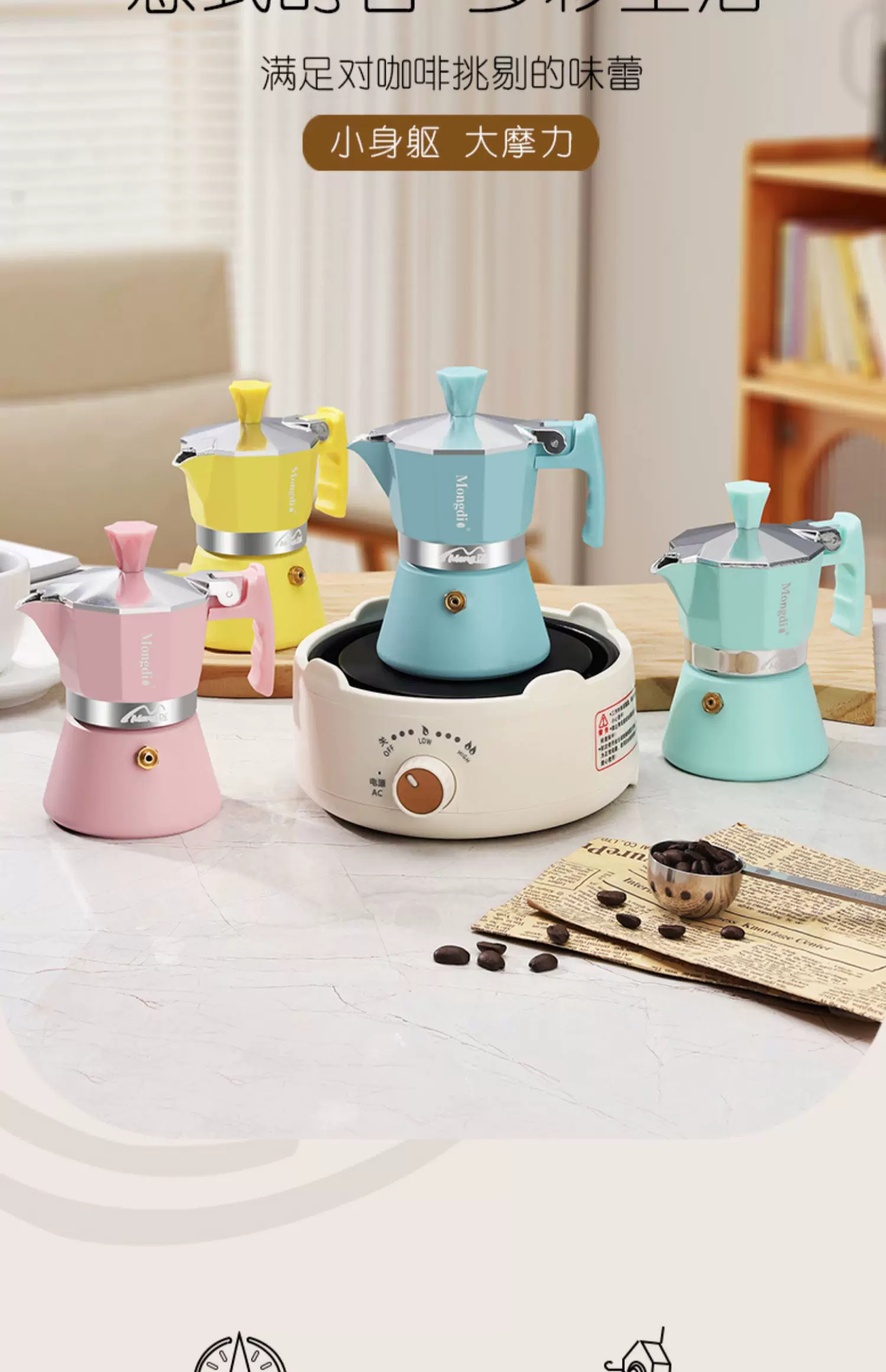 - Máy pha cà phê Moka mini nhỏ gọn Mongdio, máy pha cà phê Espresso kiểu Moka