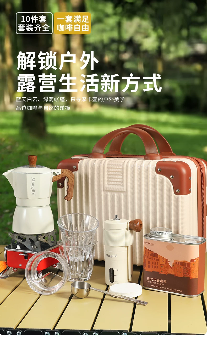 - Máy pha cà phê moka pot hai van Mongdio hộp quà tặng bộ dụng cụ pha cà phê cắm trại ngoài trời