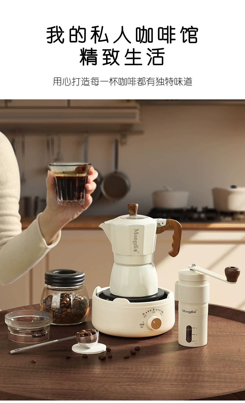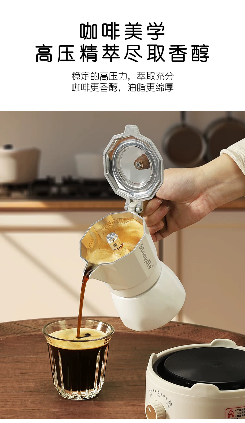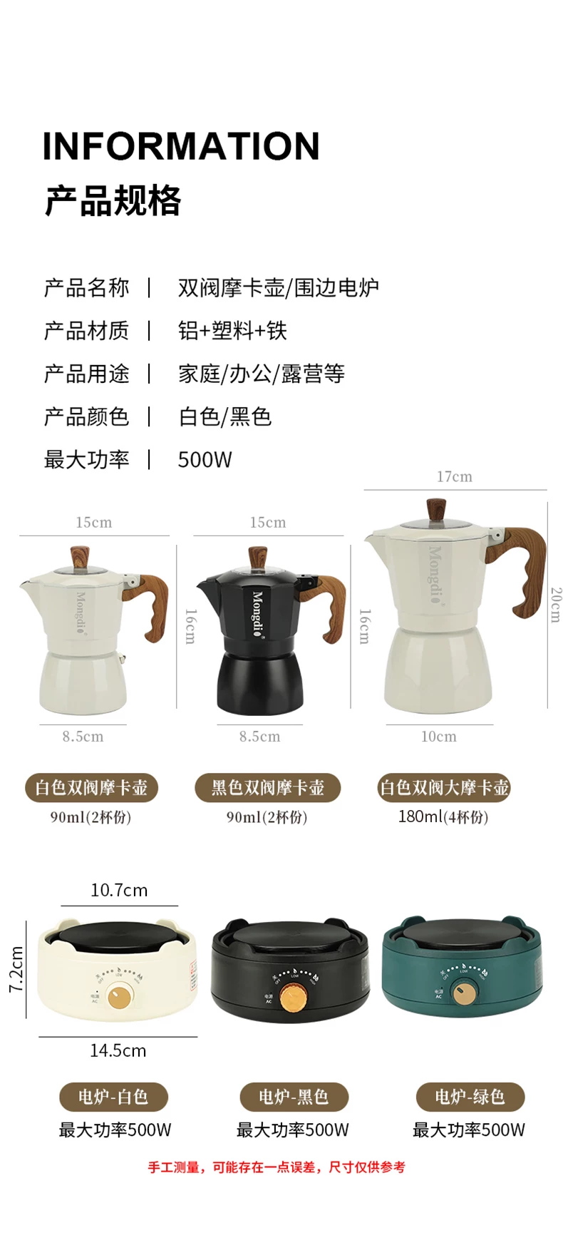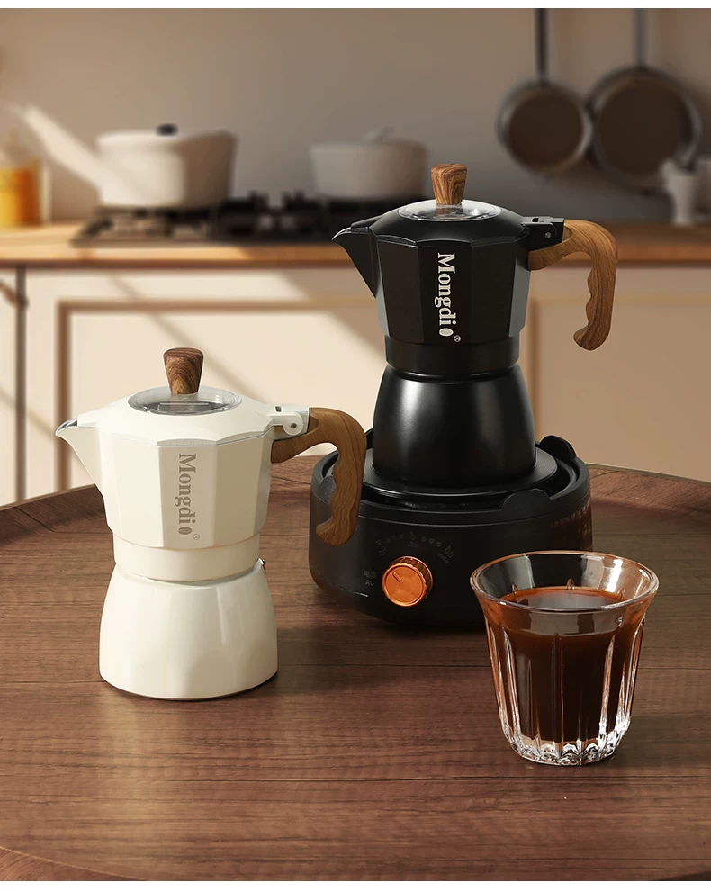 - Máy pha cà phê moka pot hai van Mongdio, máy pha cà phê espresso, bộ ấm pha cà phê moka