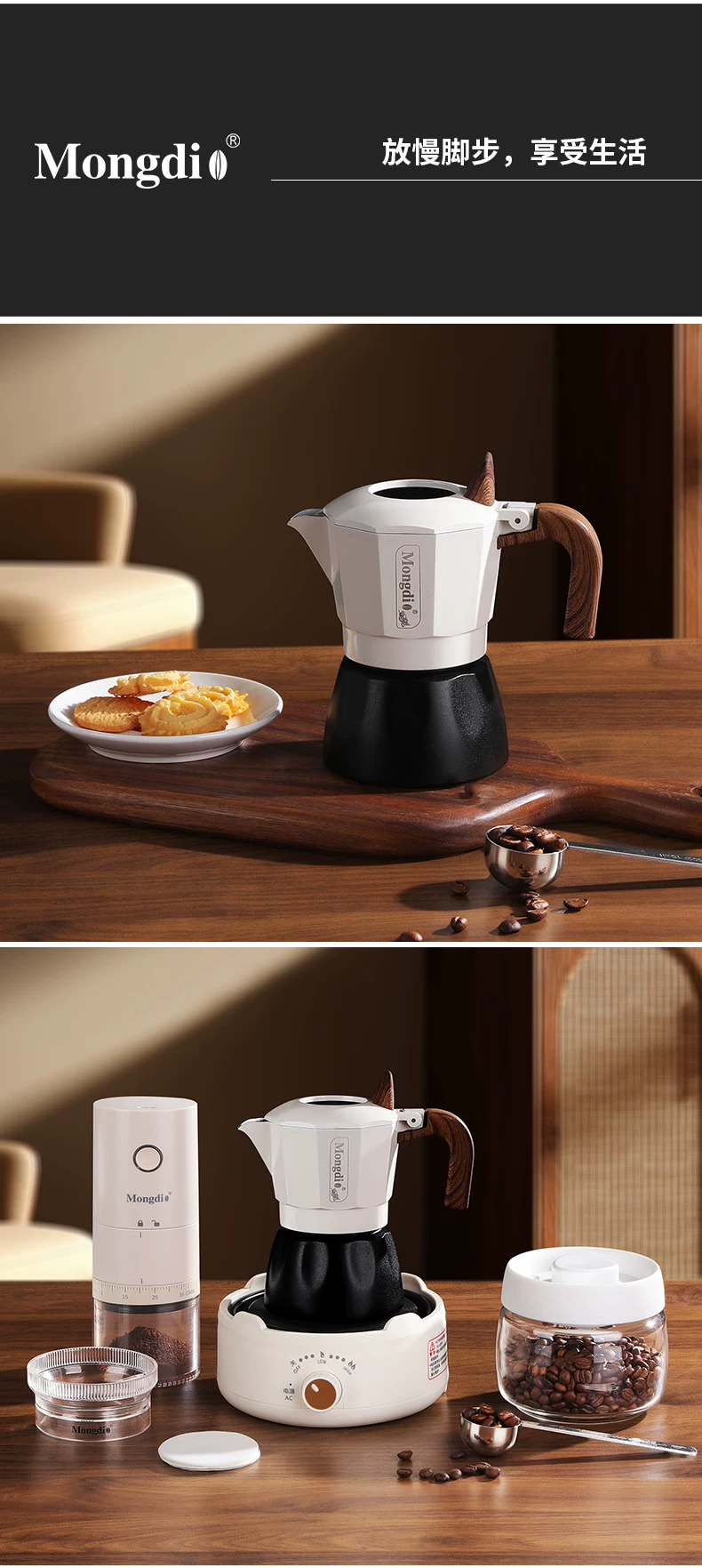 - Máy pha cà phê moka pot hai van Mongdio, máy pha cà phê espresso gia đình, bộ ấm pha cà phê moka
