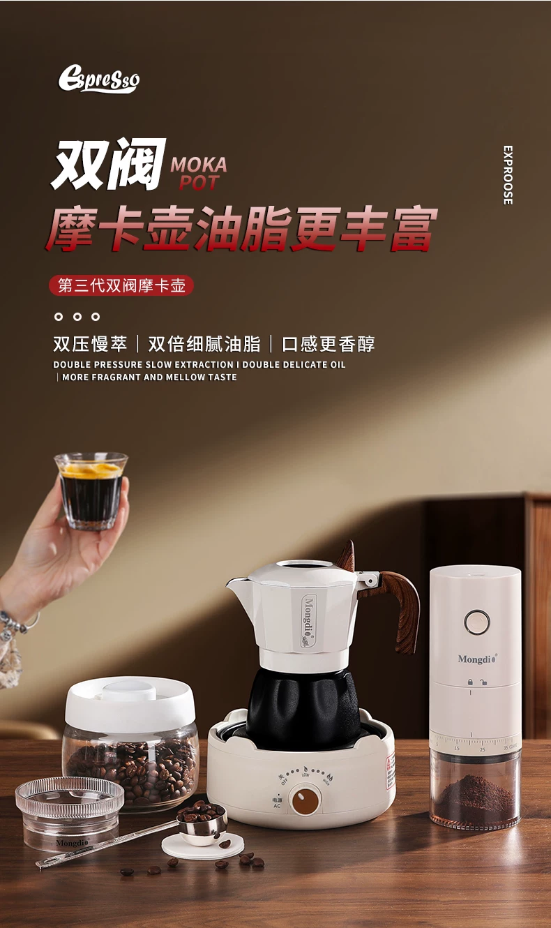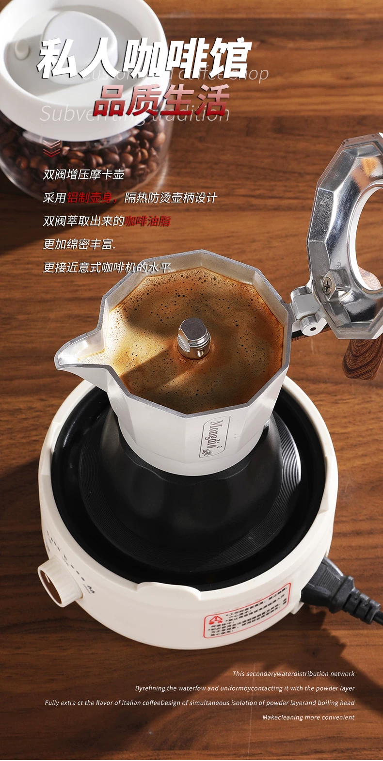 Máy pha cà phê moka pot hai van Mongdio, máy pha cà phê espresso gia đình, bộ ấm pha cà phê moka