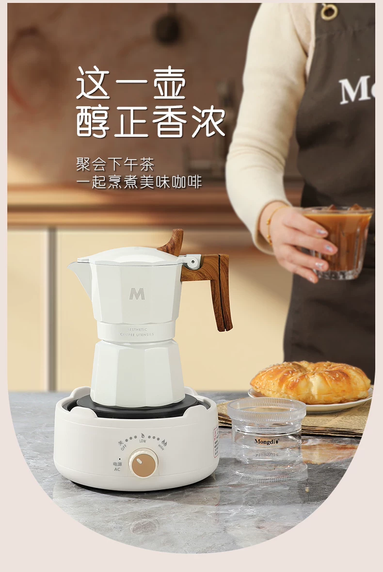 - Máy pha cà phê Moka pot hai van Mongdio, máy pha cà phê espresso nhỏ gia dụng, máy pha cà phê Moka hoàn toàn tự động