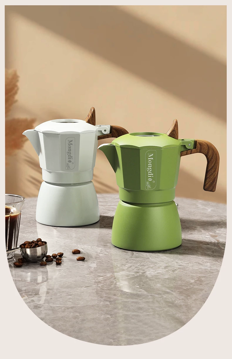 Máy pha cà phê moka pot van đôi Mongdio, máy pha cà phê espresso gia đình nhỏ, bộ ấm pha cà phê moka thế hệ thứ ba