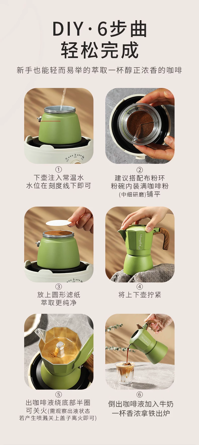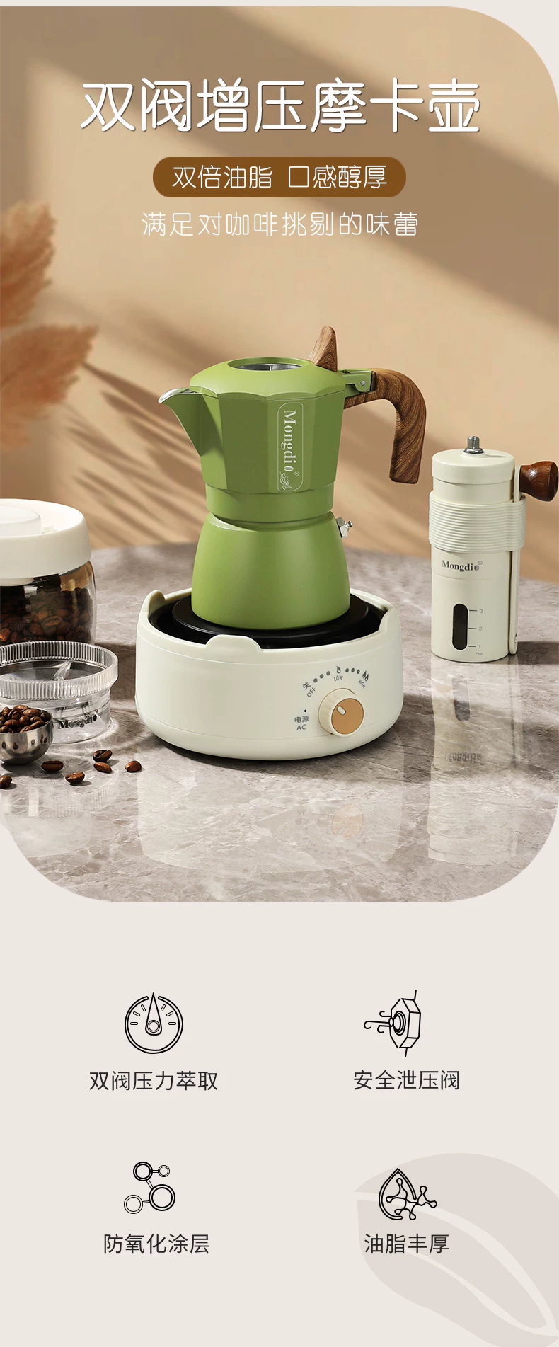 - Máy pha cà phê moka pot van đôi Mongdio, máy pha cà phê espresso nhỏ gọn cho gia đình, bộ đầy đủ