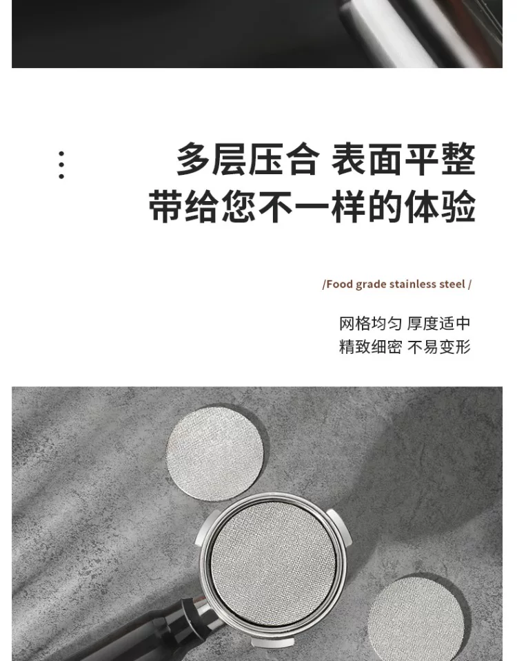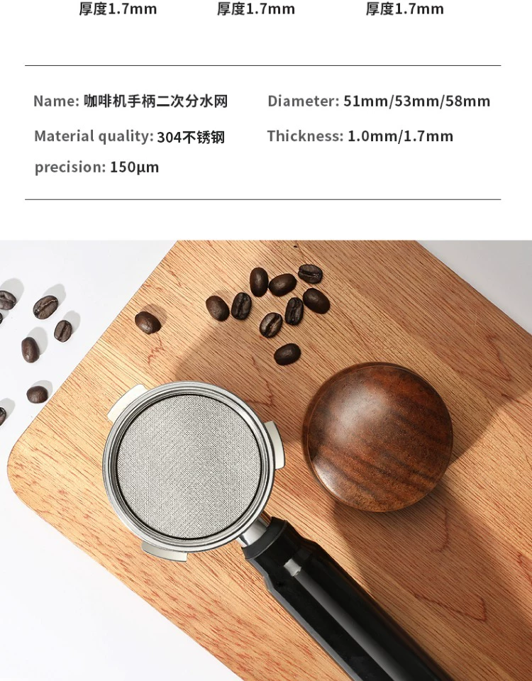 - Máy pha cà phê Mongdio, hệ thống phân phối nước thứ cấp, bộ lọc chiết xuất bằng thép không gỉ, tấm lọc nung kết, tay cầm, khay đựng bột, lưới lọc