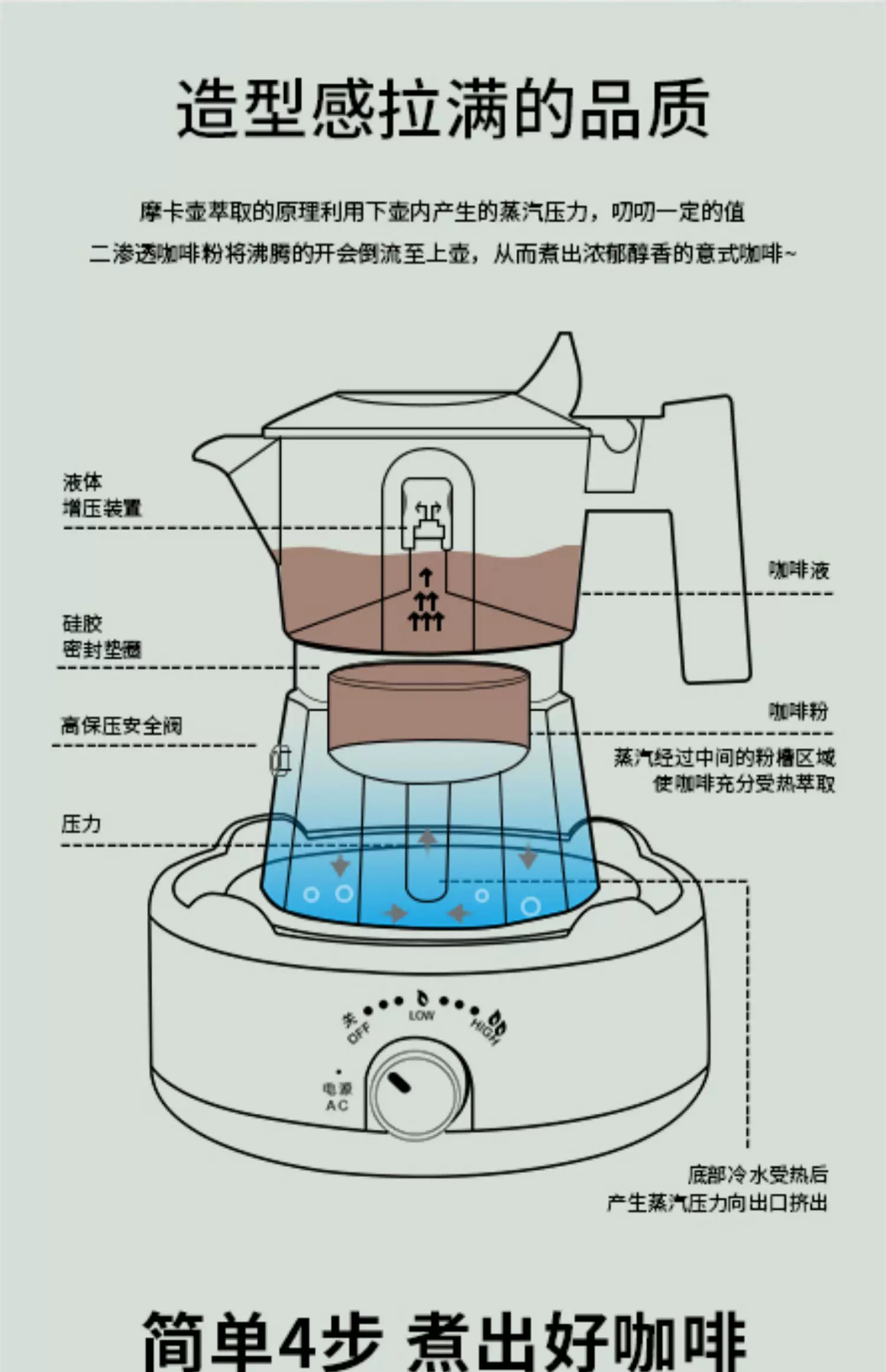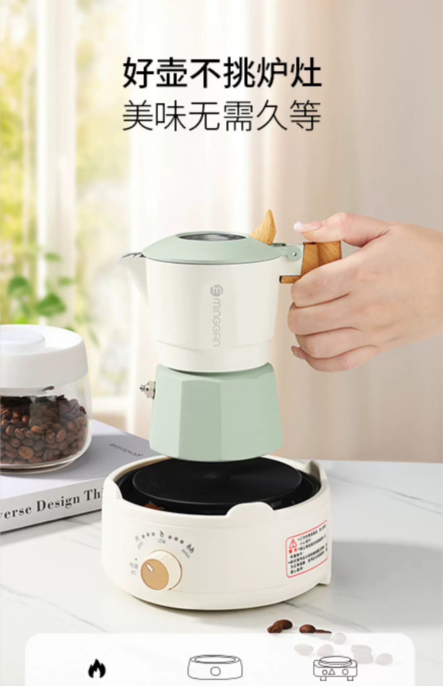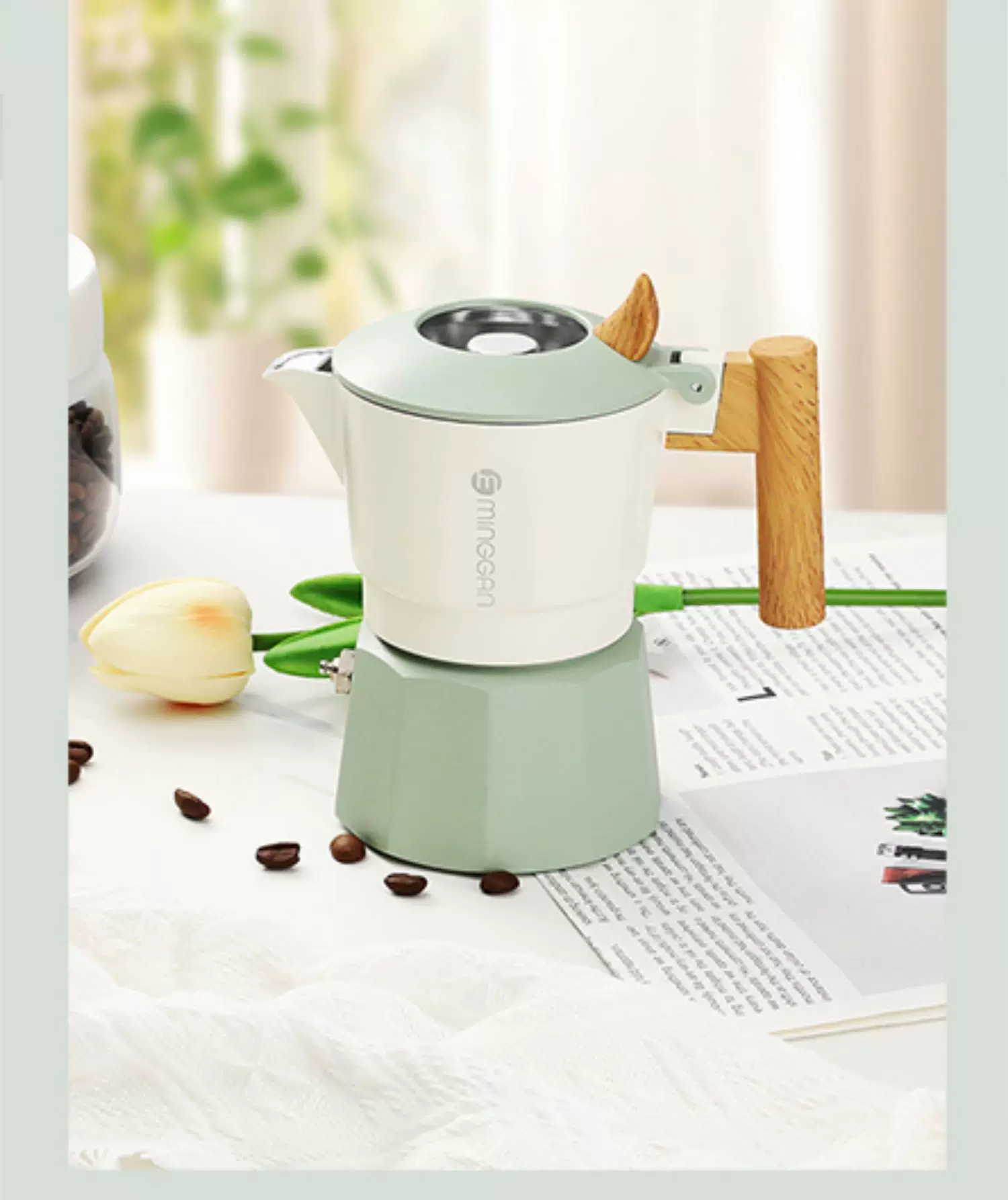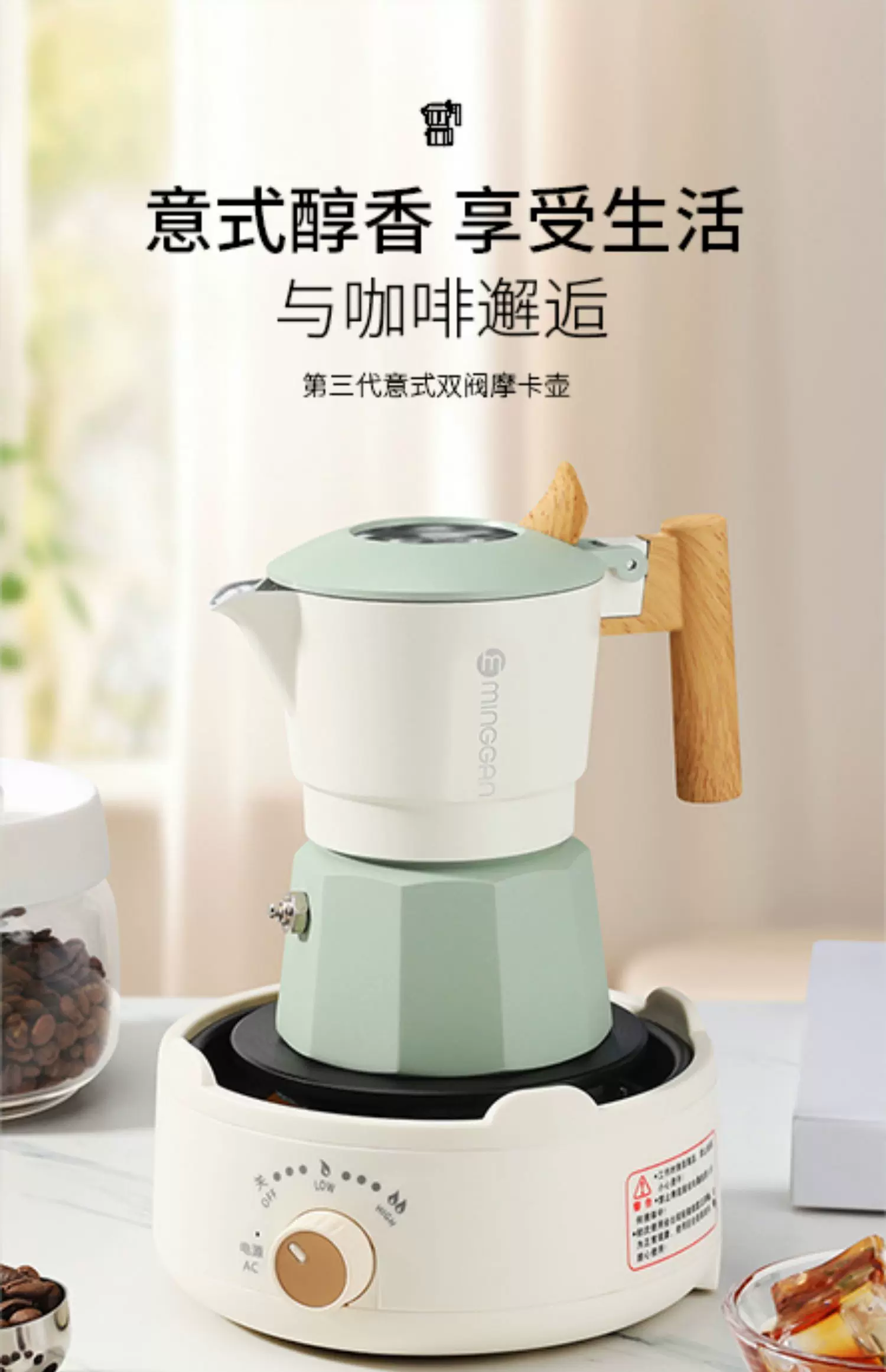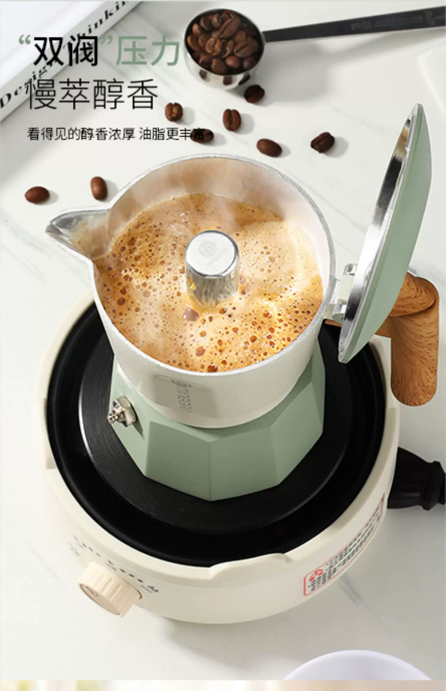 Máy pha cà phê Mongdio Moka pot hai van, máy pha cà phê espresso, máy pha cà phê nhỏ gọn cho gia đình