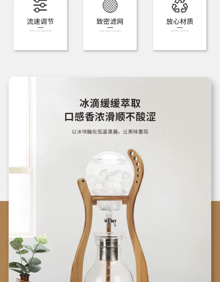 - Máy pha cà phê nhỏ giọt đá Mongdio, bình pha cà phê lạnh dung tích lớn, máy pha cà phê nhỏ giọt gia đình