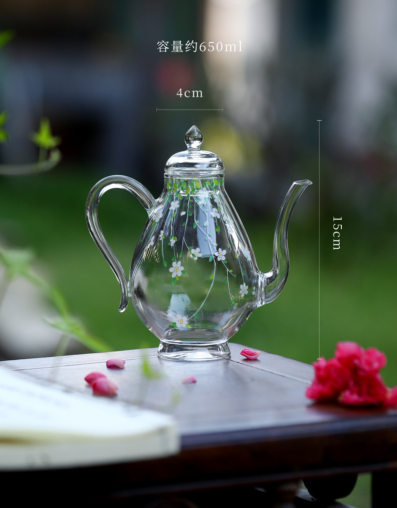 - Máy pha trà xanh mùa xuân, ấm trà giả thủy tinh chịu nhiệt cao borosilicate nhỏ tươi, ấm trà đặc biệt cho trà xanh, nồi đơn