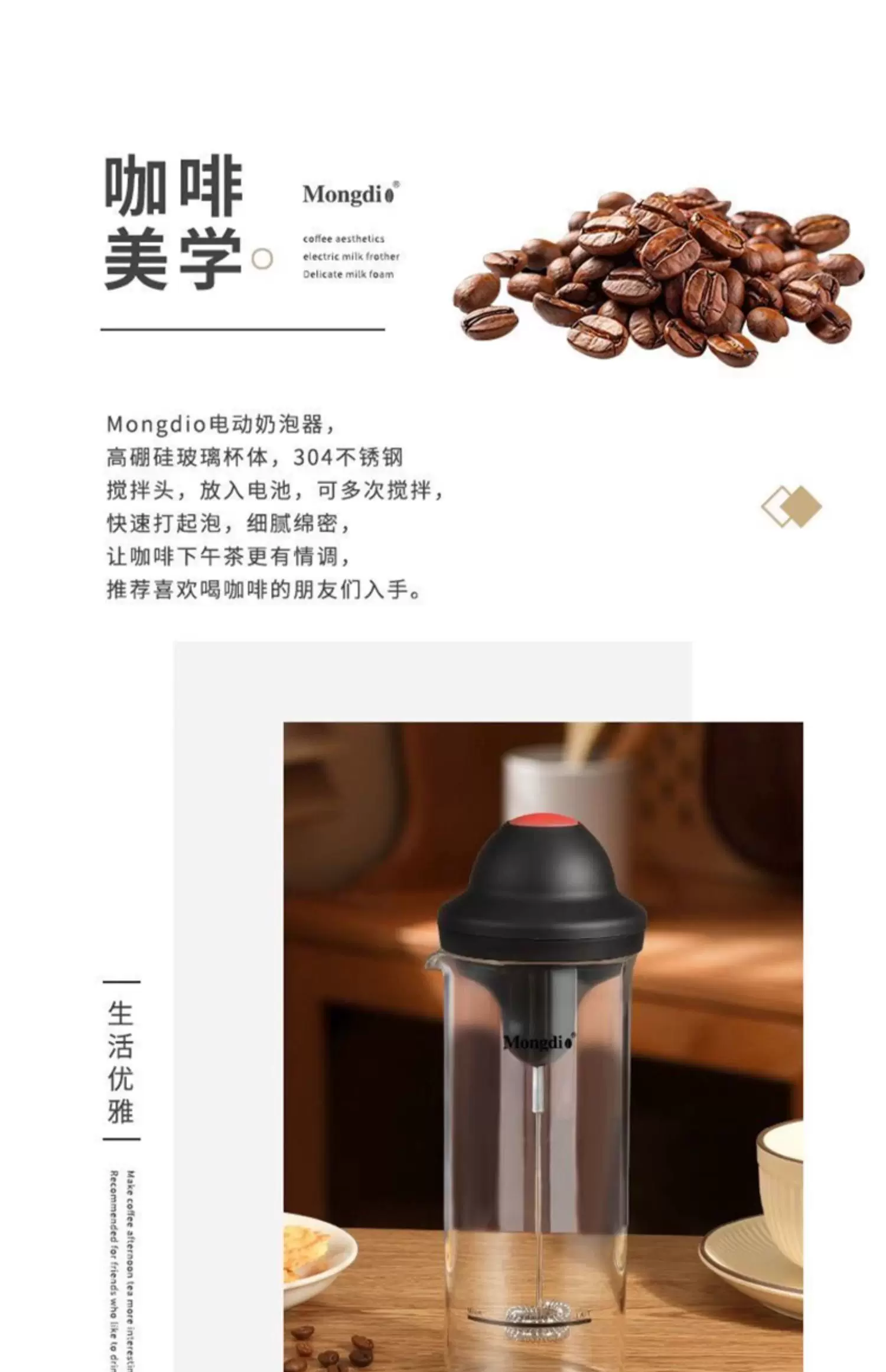 - Máy tạo bọt sữa điện Mongdio, máy tạo bọt sữa tự động, máy tạo bọt sữa cà phê, cốc sữa