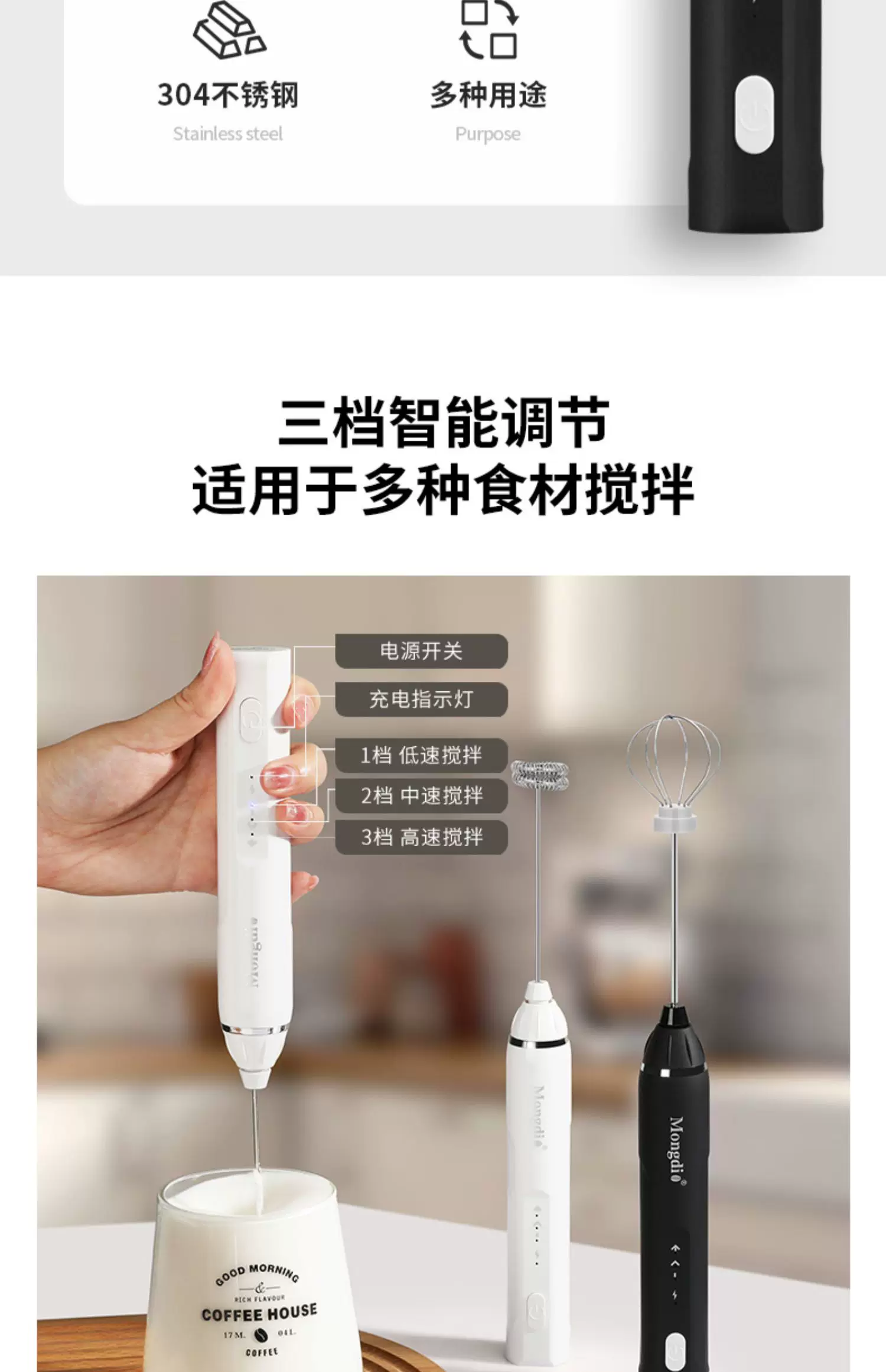 - Máy tạo bọt sữa Mongdio Máy tạo bọt sữa gia dụng Máy tạo bọt sữa điện gia dụng Máy trộn sữa cầm tay Máy tạo bọt sữa cầm tay