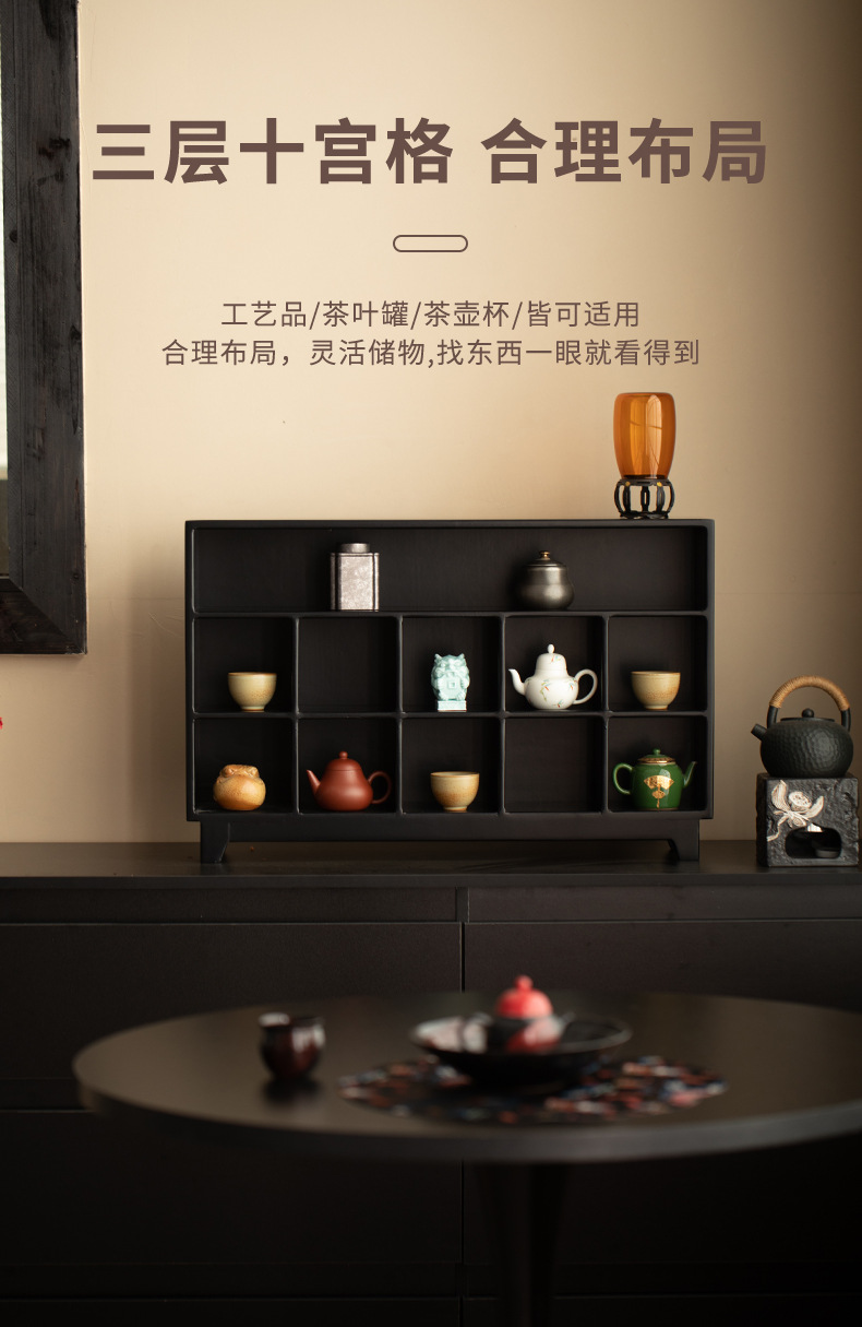 Máy tính để bàn bằng gỗ nguyên khối kiểu Trung Quốc, hộp đựng đồ đựng cốc trà, giá đựng trà Bogu, tủ trưng bày gỗ óc chó đen treo tường