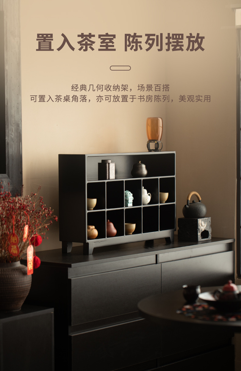 - Máy tính để bàn bằng gỗ nguyên khối kiểu Trung Quốc, hộp đựng đồ đựng cốc trà, giá đựng trà Bogu, tủ trưng bày gỗ óc chó đen treo tường