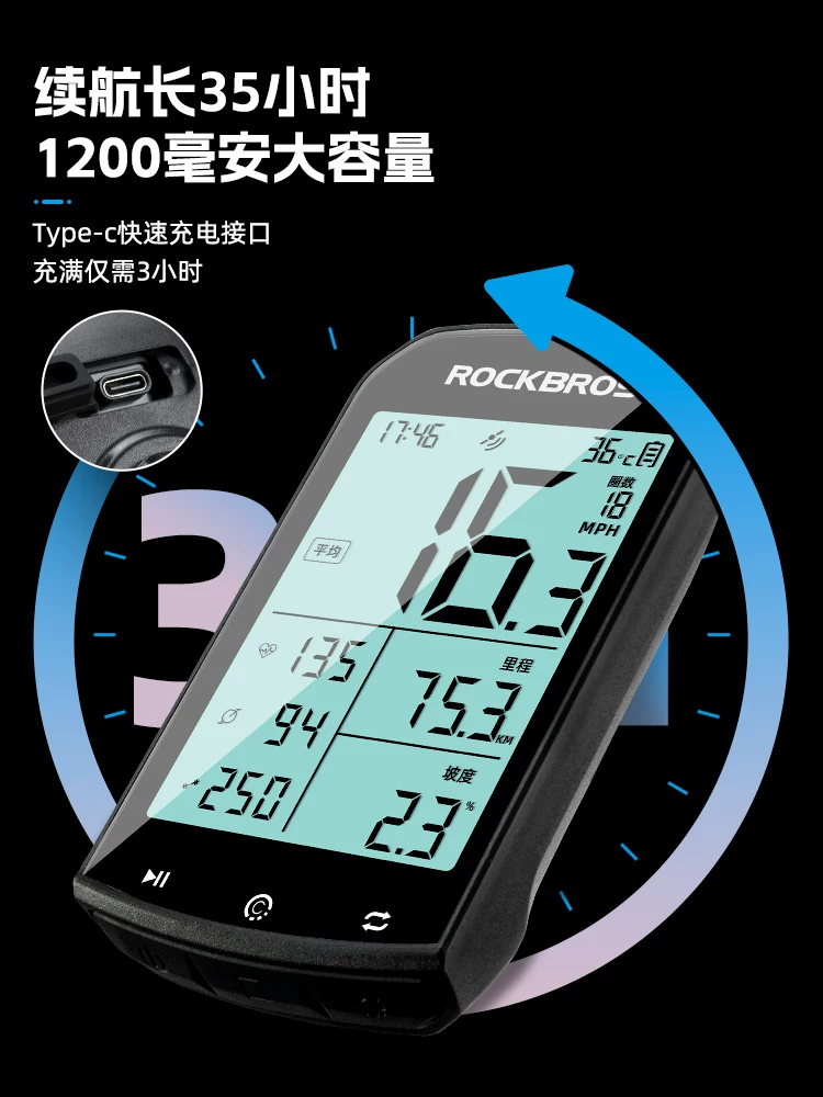 Máy tính đi xe đạp Rock Brothers Máy tính thông minh không dây dành cho xe đạp leo núi và xe đạp đường bộ Máy đo tốc độ Bluetooth