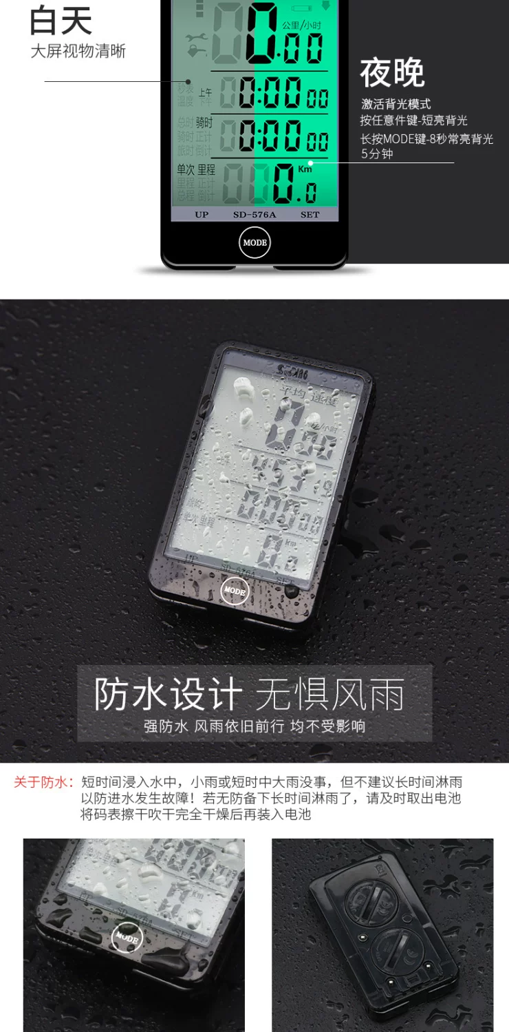Máy tính xe đạp đa năng Merida, xe đạp leo núi, chống nước, không dây, màn hình lớn phát sáng, đồng hồ đo tốc độ, đồng hồ đo quãng đường của Trung Quốc