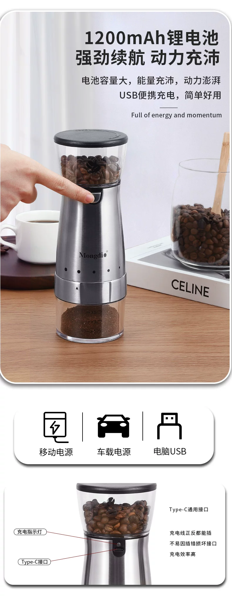 Máy xay cà phê điện Mongdio máy xay cà phê tự động máy xay cà phê thủ công nhỏ