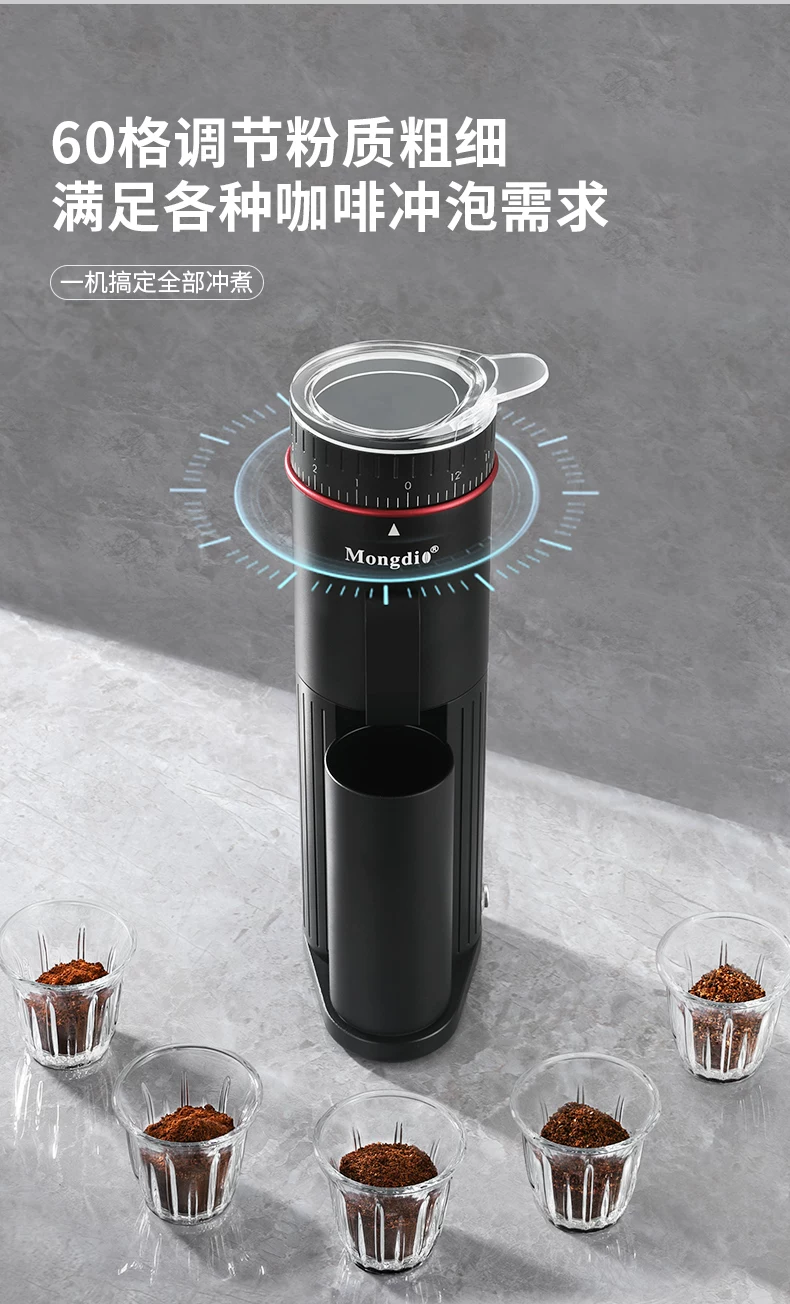 Máy xay cà phê điện Mongdio Tianying dùng trong gia đình, sản phẩm đơn dành cho cà phê espresso và pha cà phê, máy xay cà phê di động.