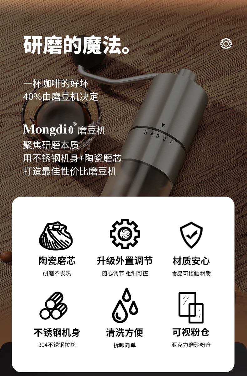 Máy xay cà phê quay tay Mongdio, máy xay cà phê thủ công nhỏ dành cho gia đình, máy xay hạt cà phê thủ công