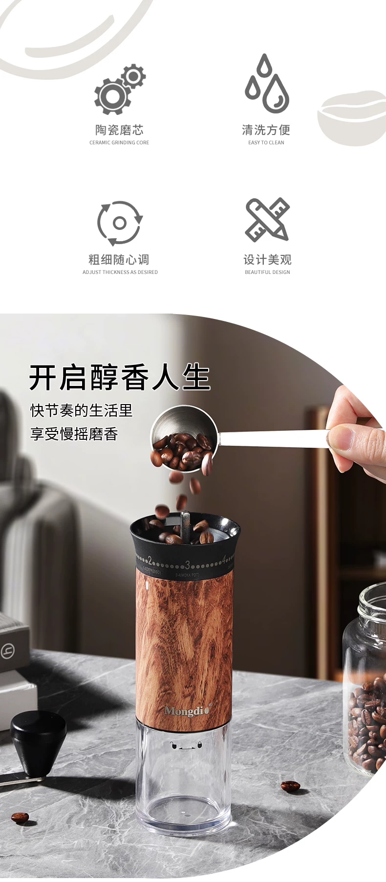 Máy xay cà phê thủ công Mongdio máy xay hạt cà phê máy xay cà phê cầm tay máy xay cà phê