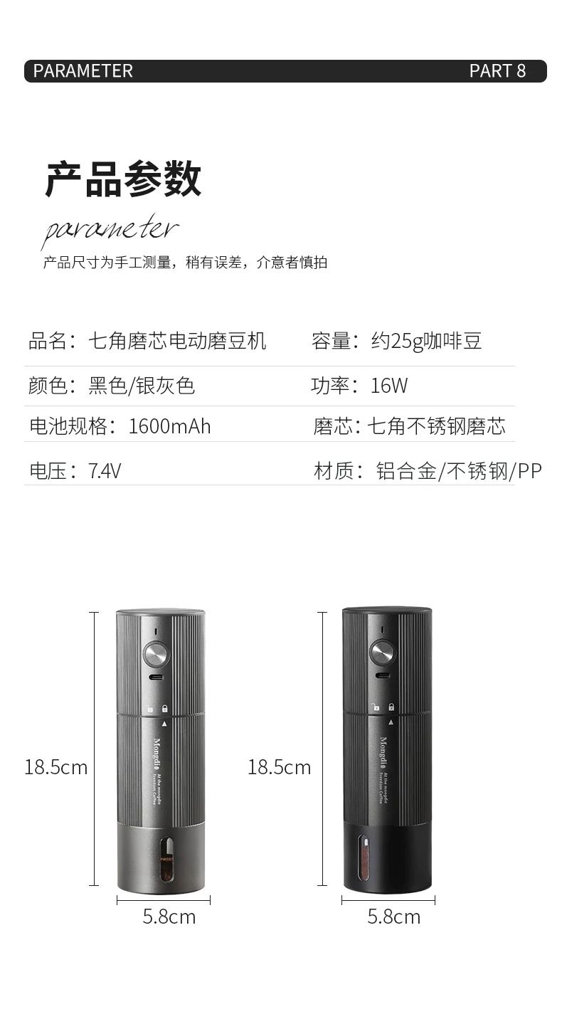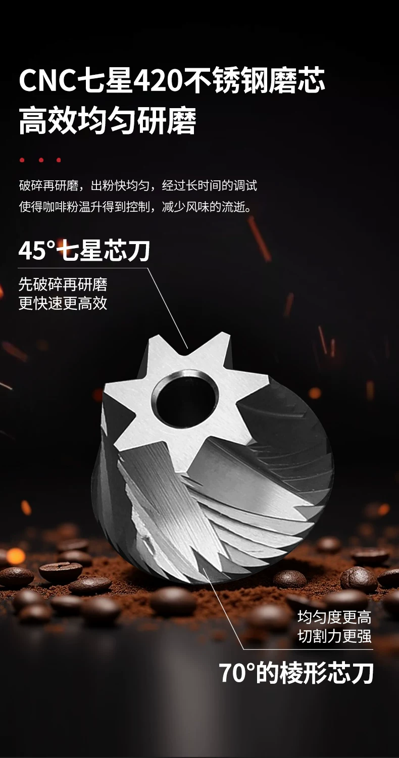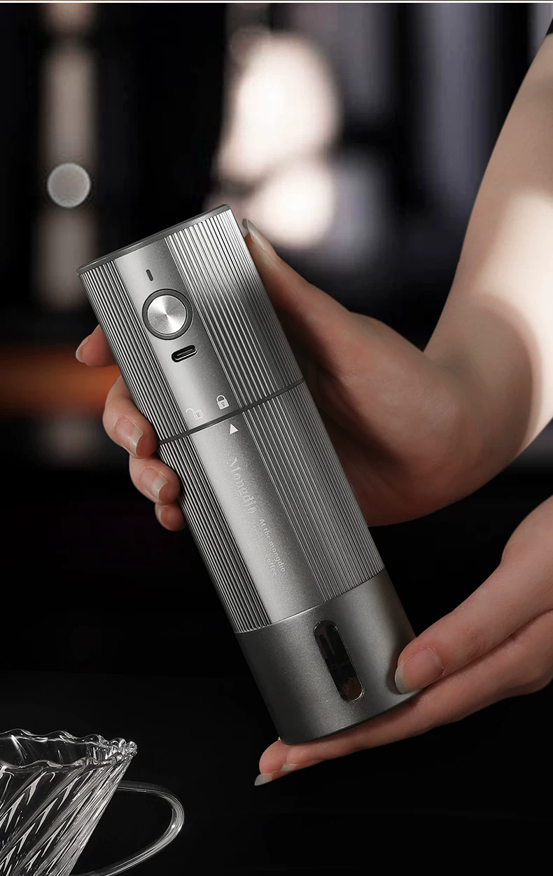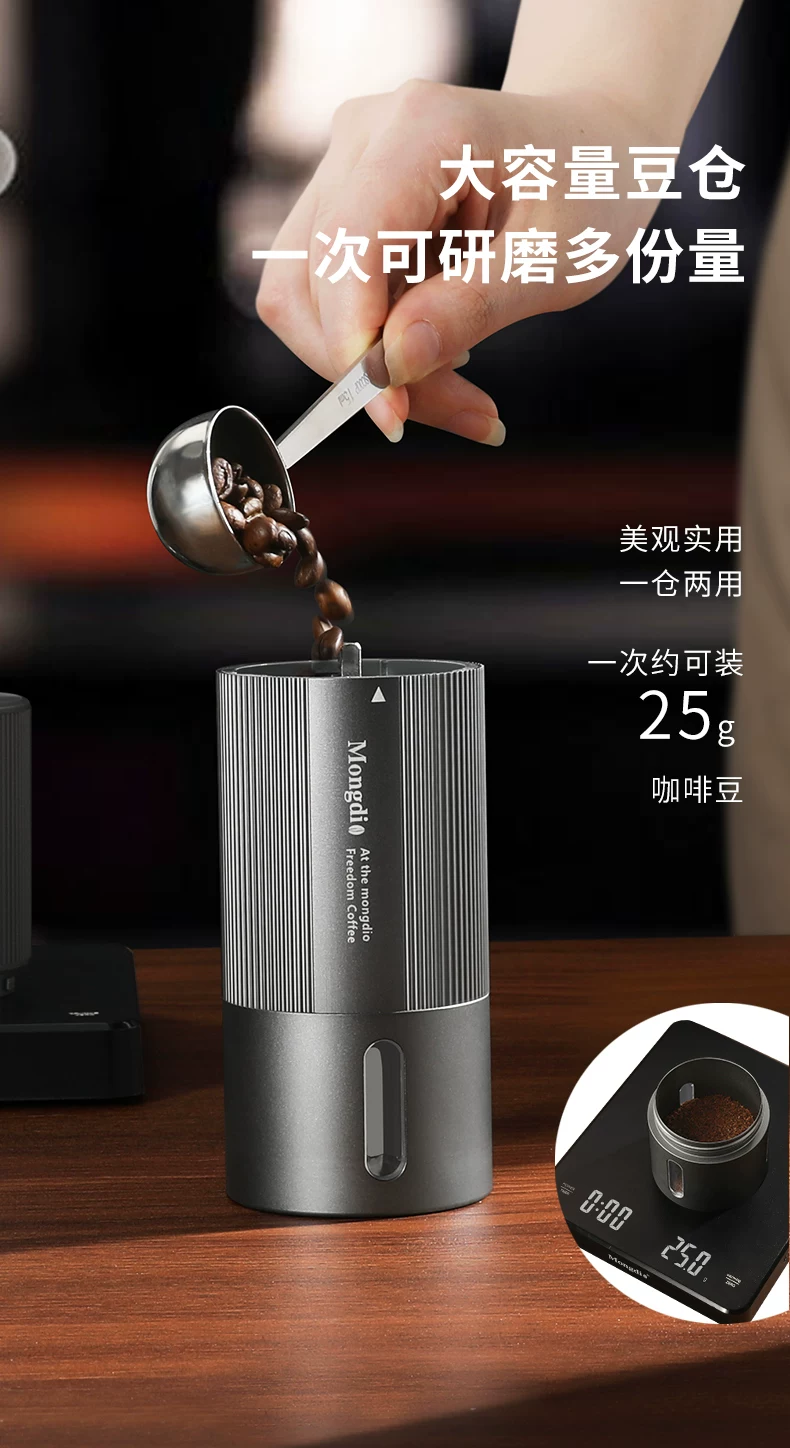 Máy xay hạt cà phê điện Mongdio Máy xay hạt cà phê lõi thép bảy sao CNC cầm tay